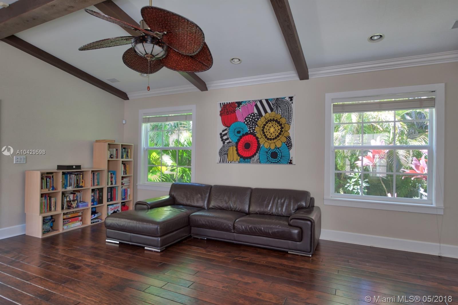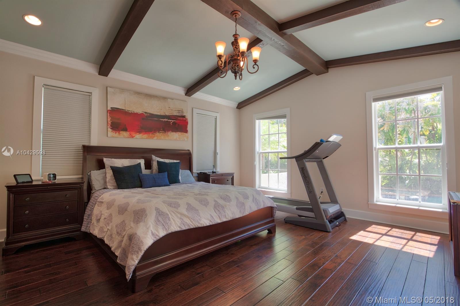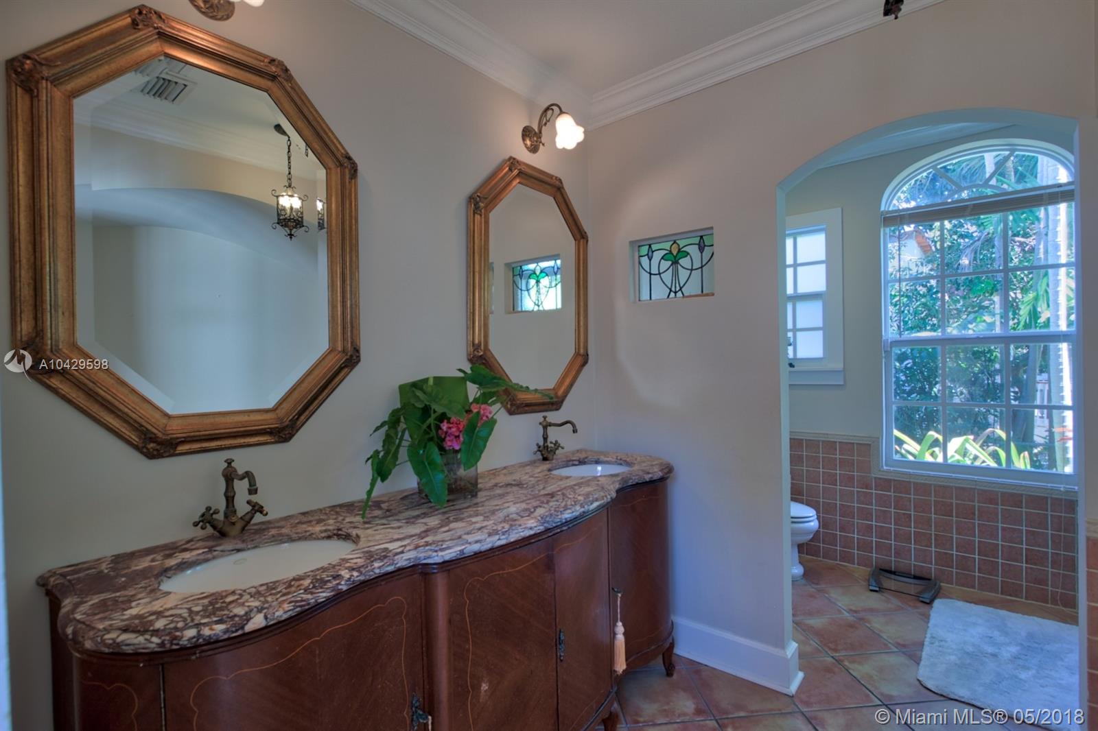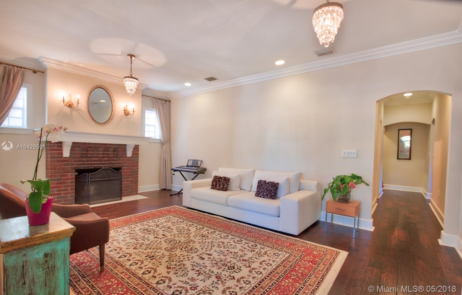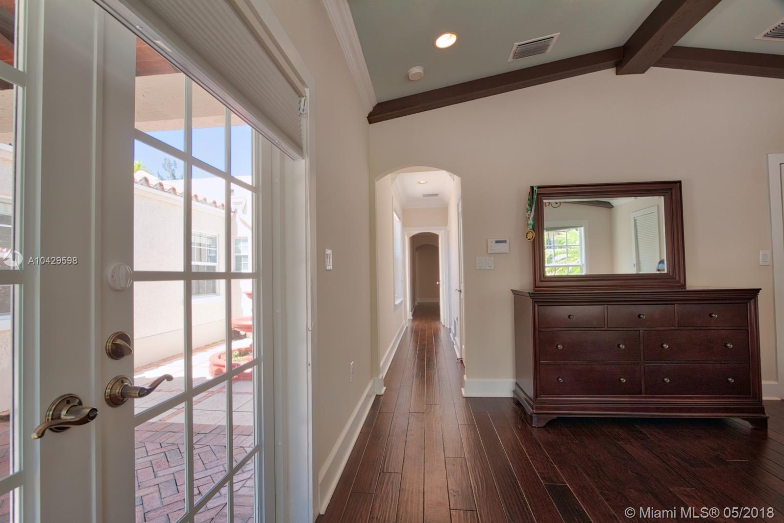 Old world & modern luxury mingle in this Mediterranean Revival gem. Designed by renowned Architect H. George Fink, historic designated in 1997, after major expansion and remodeling. High ceilings of exposed beam featured throughout many rooms, brick accents on arches and chimney and all brick fireplace, wide plank hardwood floors, porches & verandas honor the history of this home. Gourmet kitchen with island, chef grade appliances, formal living, formal dining room, enormous family room flows to covered terrace. House wraps around a courtyard & fountain inspired by southern Spain architecture. Abundant closets, large baths, pool with sheer descent, plus large cabana. Recent re-roof, tented, AC, impact windows/doors. Septic and pool date to 2002. Practical, turnkey and prefect for family!