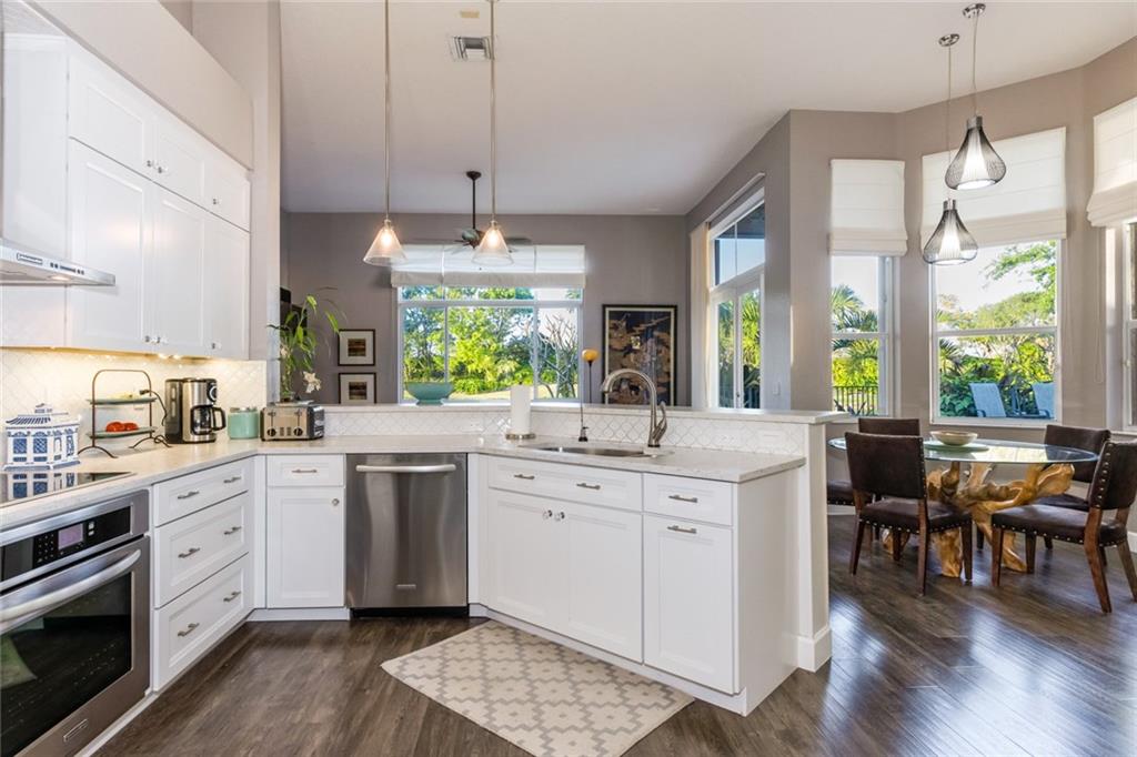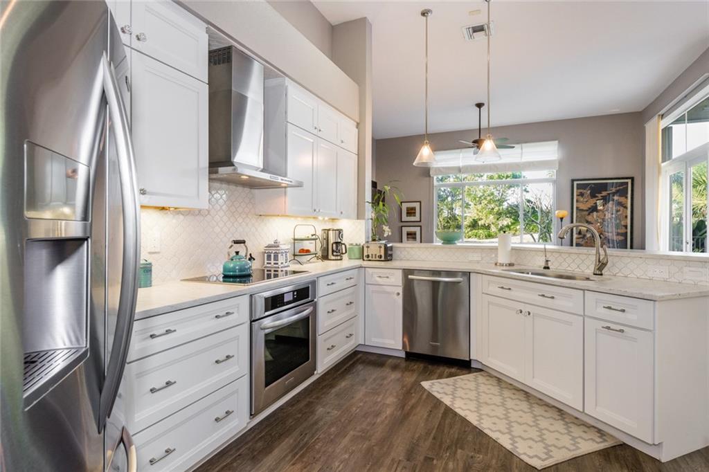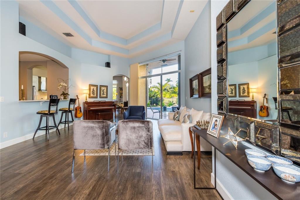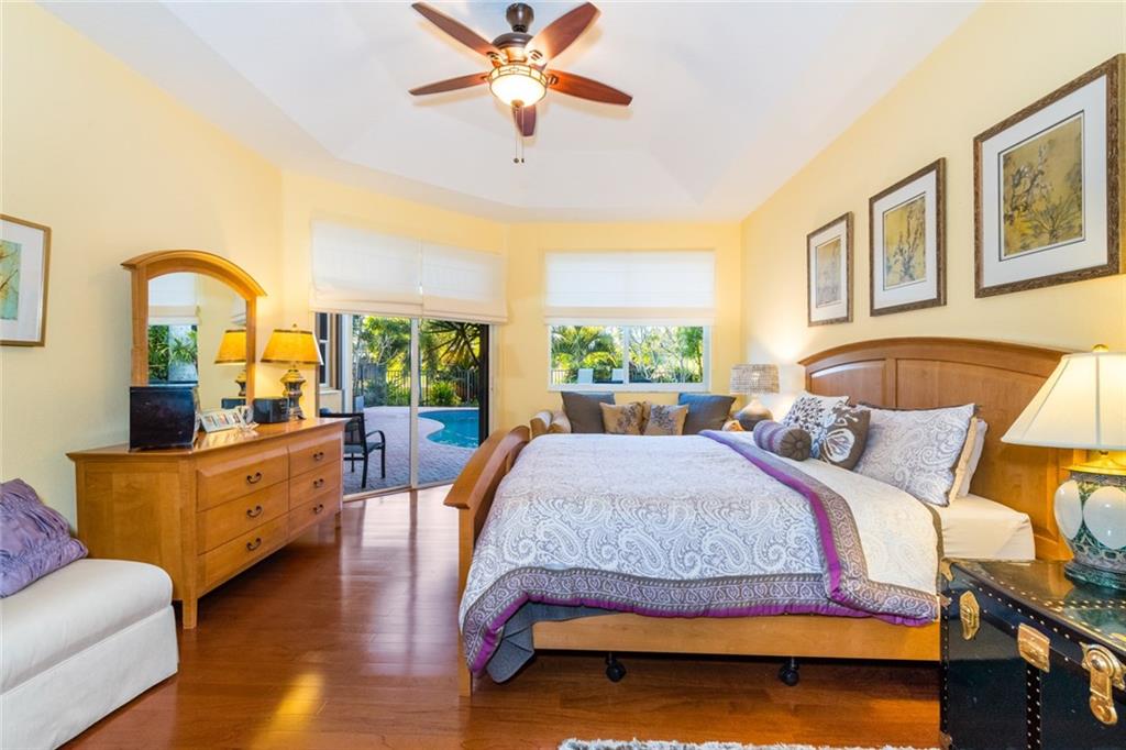 Modern flair with upgrades around every corner.Tranquil waterviews encompasses this 4/3 pool home plus den in Master bedroom.Special Kitchen-Quartz countertops, self closing drawers, stainless steel appliances, & undermount lighting.Get ready for a spa in your Master Bath which includes river rock, frameless shower, & modern vanities.High end bar with refrigerated drawers & custom cabinetry.Watch the stars by fire pit overlooking stars & water.Pool with overhang makes for unforgettable family gatherings.
