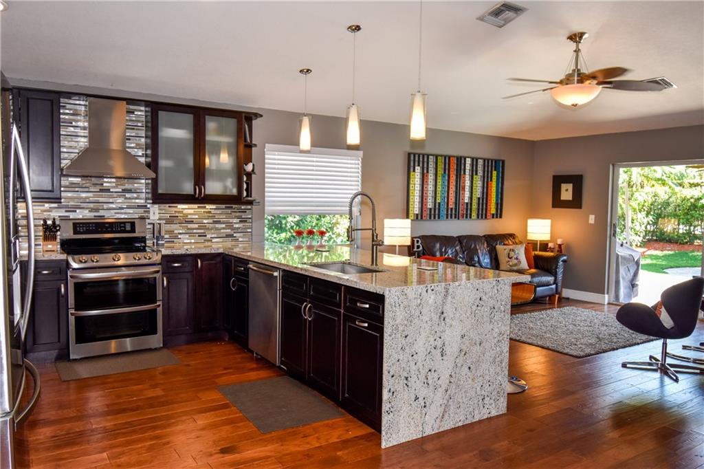 This beautiful 4 Bedroom/ 2 Bath, Pool Home in desirable Parkwood at Kensington features valued ceilings, engineered wood floors, updated kitchen w/wood cabinets, granite countertops, "pop-up" outlets, pantry, stainless steel upgraded appliances, High-Hat lighting, custom TV area w/ Eldorado Stone, built-in cabinet w/granite, laminate flooring in bedrooms, Smith & Noble blinds, new garage door, A/C replaced in 2013, new pool pump motor, new pool salt system. Private fenced patio/pool area. Must See!