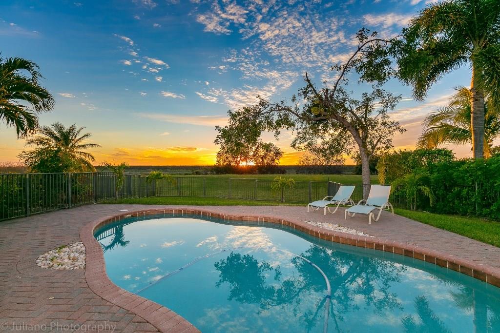 IF AMAZING SUNSETS AND FOREVER VIEWS ARE WHAT YOU ARE LOOKING FOR THEN THIS IS YOUR HOME! Casa Del Sol is a unique enclave of 29 homes all with expansive views of the Everglades. This home features over 3,600 sq. ft. of living space, 1 bedroom down and 3 upstairs + office area. Other features include an oversized master suite with balcony & adjacent bonus room, large master bathroom with marble throughout, freshly painted interior, 2 new A/C's, covered screened patio, pool and a fenced yard.