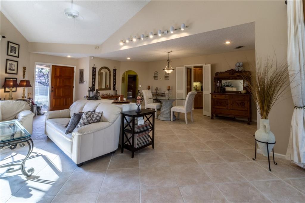 THIS IS A MUST SEE ONE STORY 3 bed/2 bath home with a screened enclosed pool! Shows like a model! Home is in great condition. Well-maintained by owner. Secondary beds split from master. Updated Kitchen and Baths and new perimeter fence. Eat in kit., with break. bar and large family room. Stainless steel appliances, accordian shutters, tile in all main living areas. Great home for entertaining. Vaulted/volume ceilings. Square footage cannot be guaranteed.