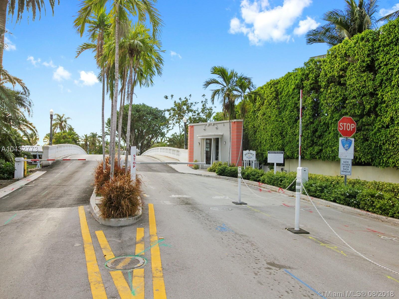 Location Location! Excellent opportunity on exclusive, gated, Sunset Island 1 in Miami Beach. This 1951, recently rented 4bed/4bath single story home, is one of the few remaining large lot opportunities to customize, expand, or rebuild a 5000+ SF home on the coveted Sunset Islands. Encompassing an oversized 12,524 SF corner lot, this enviable address features 3118 SF interior living space, a large 2 car garage, circular drive, spacious living room open to separate dining room and Florida room, mature landscaping, and large back yard with ample room for pool and deck. Additional features include an upgraded kitchen, new granite countertops, newer appliances, walk in closets, numerous storage closets, 2016 AC, original but pristine baths. First time on market in 40 years. Repriced to Sell!!