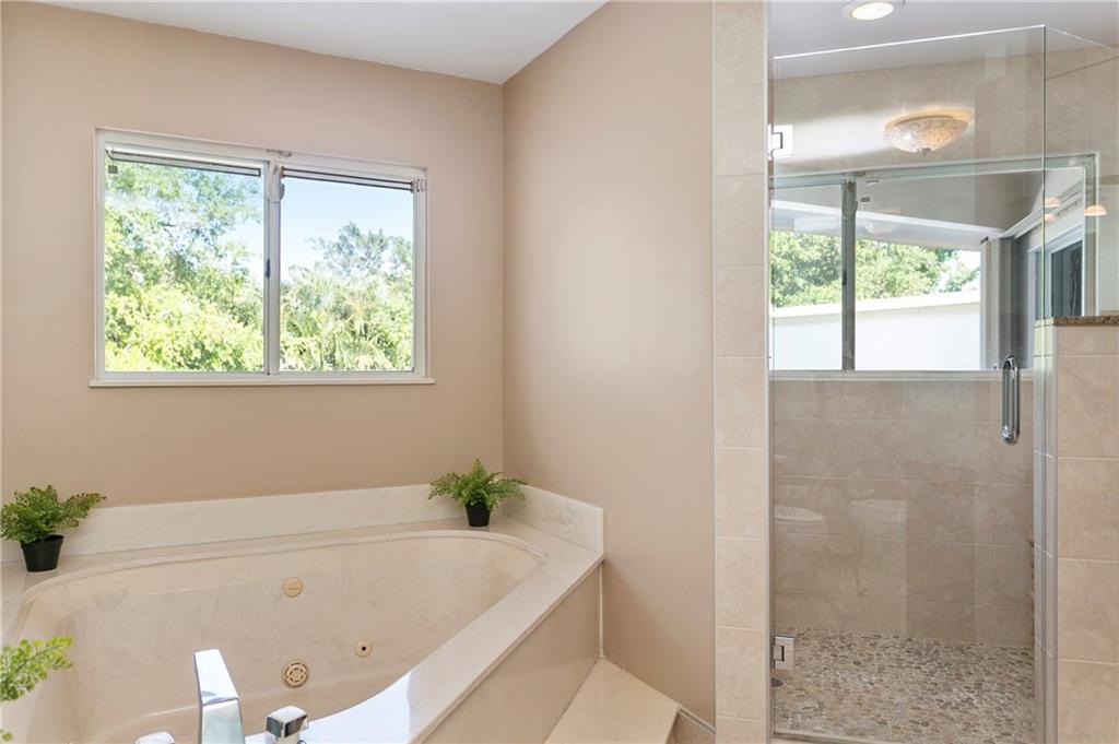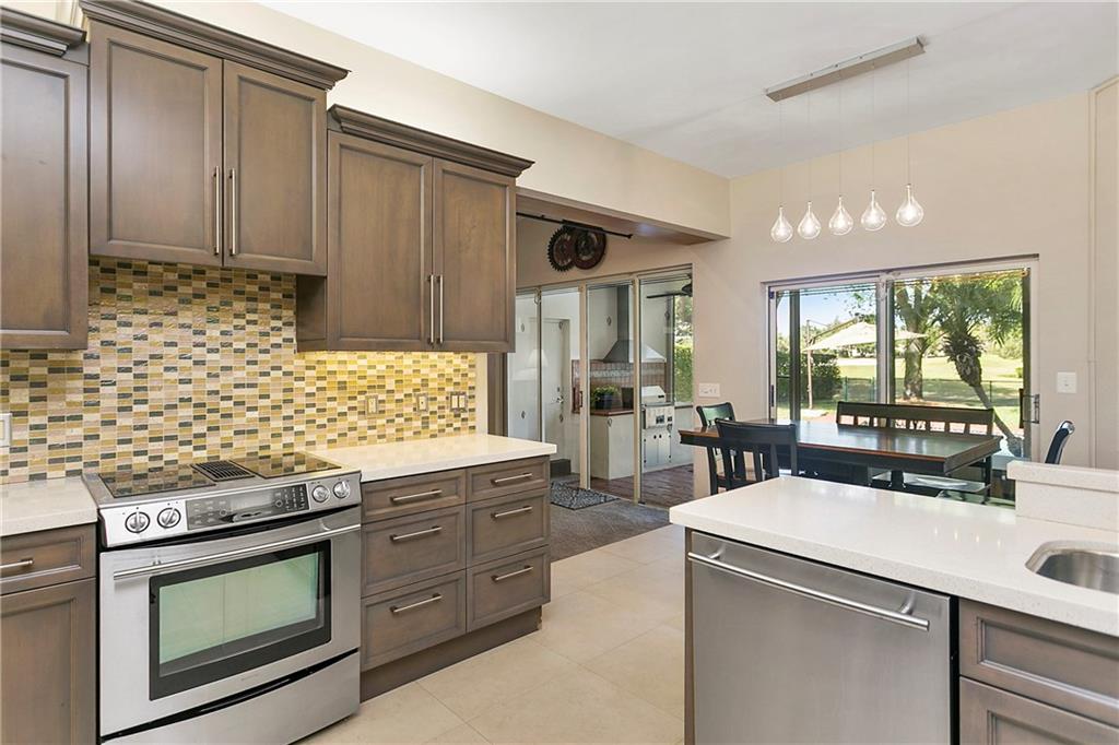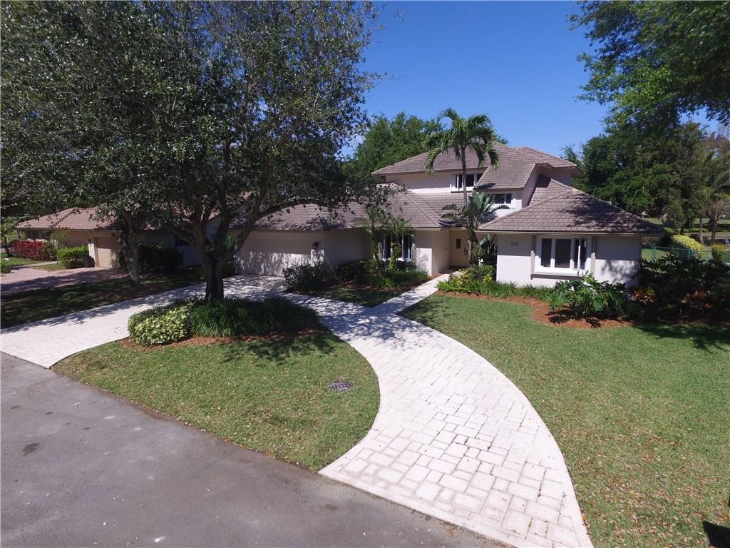 Updated and impeccably maintained custom home on cul-de-sac with fabulous golf views. Incredible kitchen with white quartz counters, stained maple cabinets, bosch and jannair stainless appliances, glass tile backsplash and porcelain floors. granite or marble baths, 3 a/c's, wood burning fireplace, wet bar, central vac, back patio has built-in grill and screening is hurricane impact / resistant. Accordian shutters. Entire second floor is master suite and deck. Please see photos!