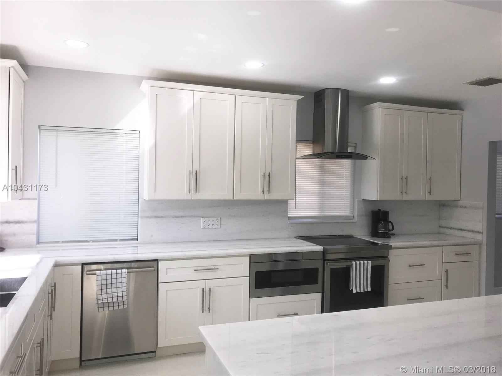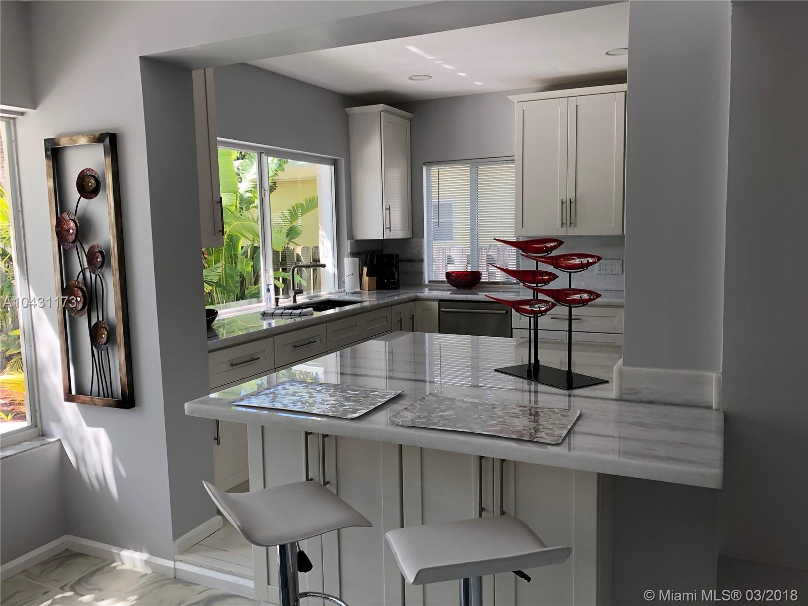 Beautiful recently updated 3 bedroom 3 bath home with Gourmet kitchen with professional appliances (Thermador,Jenn Air, Bosch) Gorgeous white marble counter tops with additional outdoor living area that provides plasma TV Lounge area,Tiki Bar, BBQ Grill, mini fridge and Alfresco dining , all overlooking the heated pool & tropical Back yard perfect for entertaining, FANTASTIC LOCATION 5 minutes to the beach 10 minutes to South Beach, Bal Harbour mall and restaurants, fully furnished just bring your personal belongs, the main house is very spacious 3 bedroom 2 bath walk in closets dining and living and Guest house is one bedroom with private bath & kitchen, marble floors and living area with gorgeous views to the pool and back yard, this house has been renovated & well maintain.