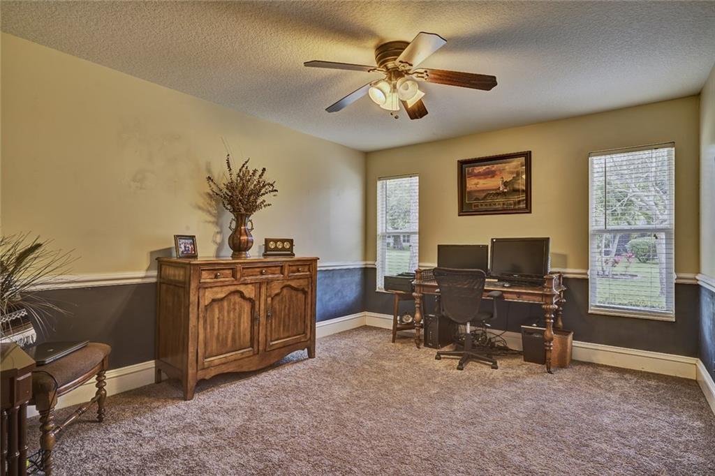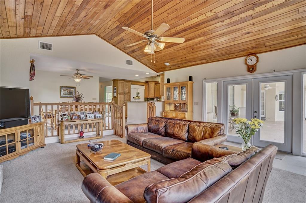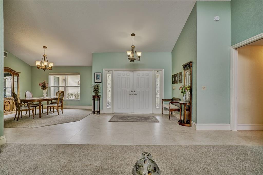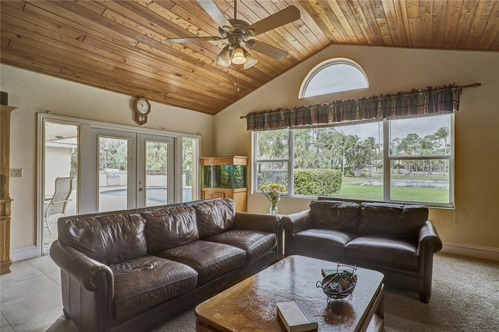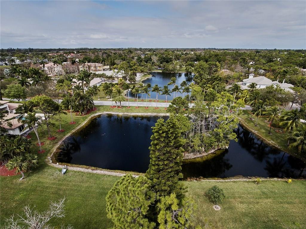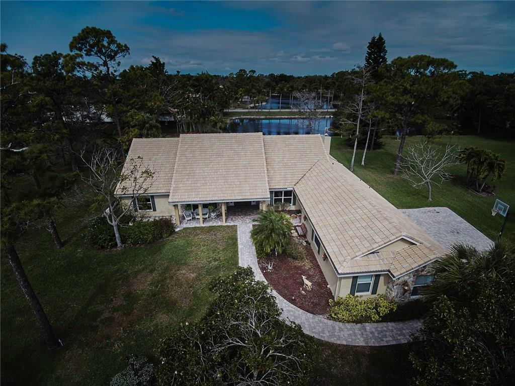 Magnificent sprawling one story home w/ vaulted ceilings. Open & welcoming, this charming home sits on almost a full acre lot in beautiful Whispering Woods. 4 bedrooms, 3 bath, kitchen w/ maple wood cabinets & granite counters, eat in kitchen secondary dining and formal dining, formal living room & family room, 3-car garage, pool, spa, bbq & the most amazing yard with tranquil lake view. Impact Windows, Huge circular & extended paver driveway. Must see - this beautiful property will be your quiet oasis.
