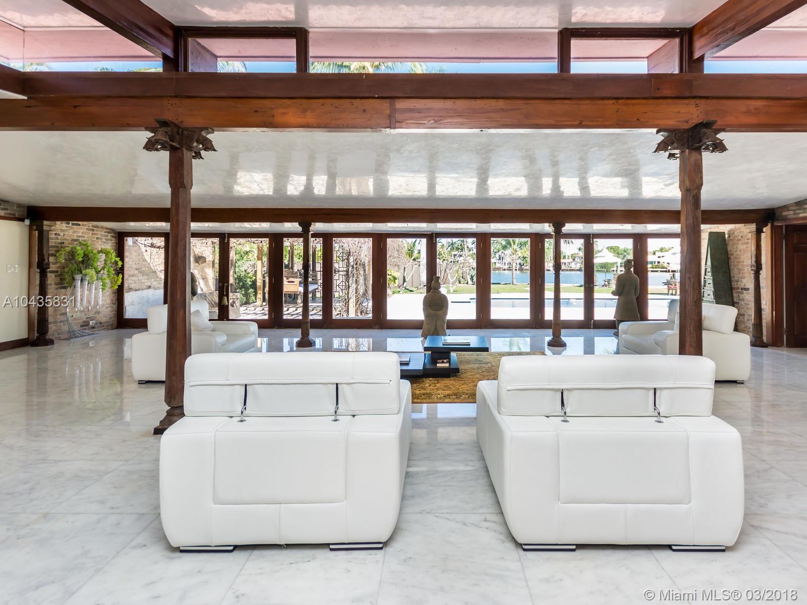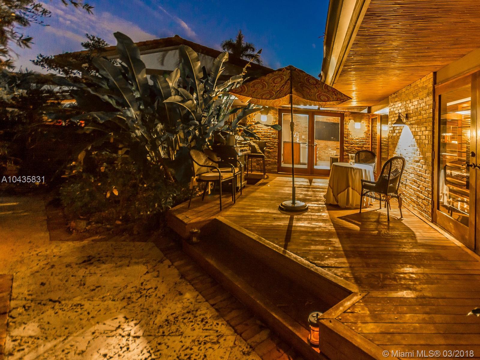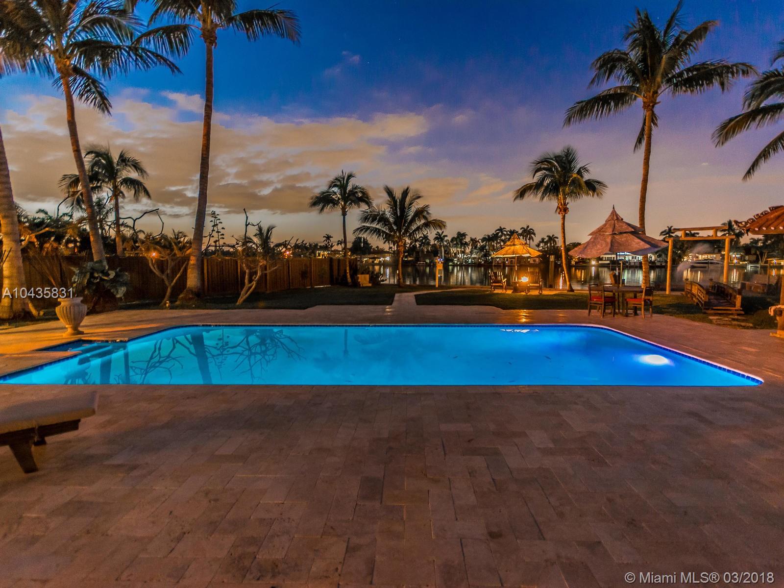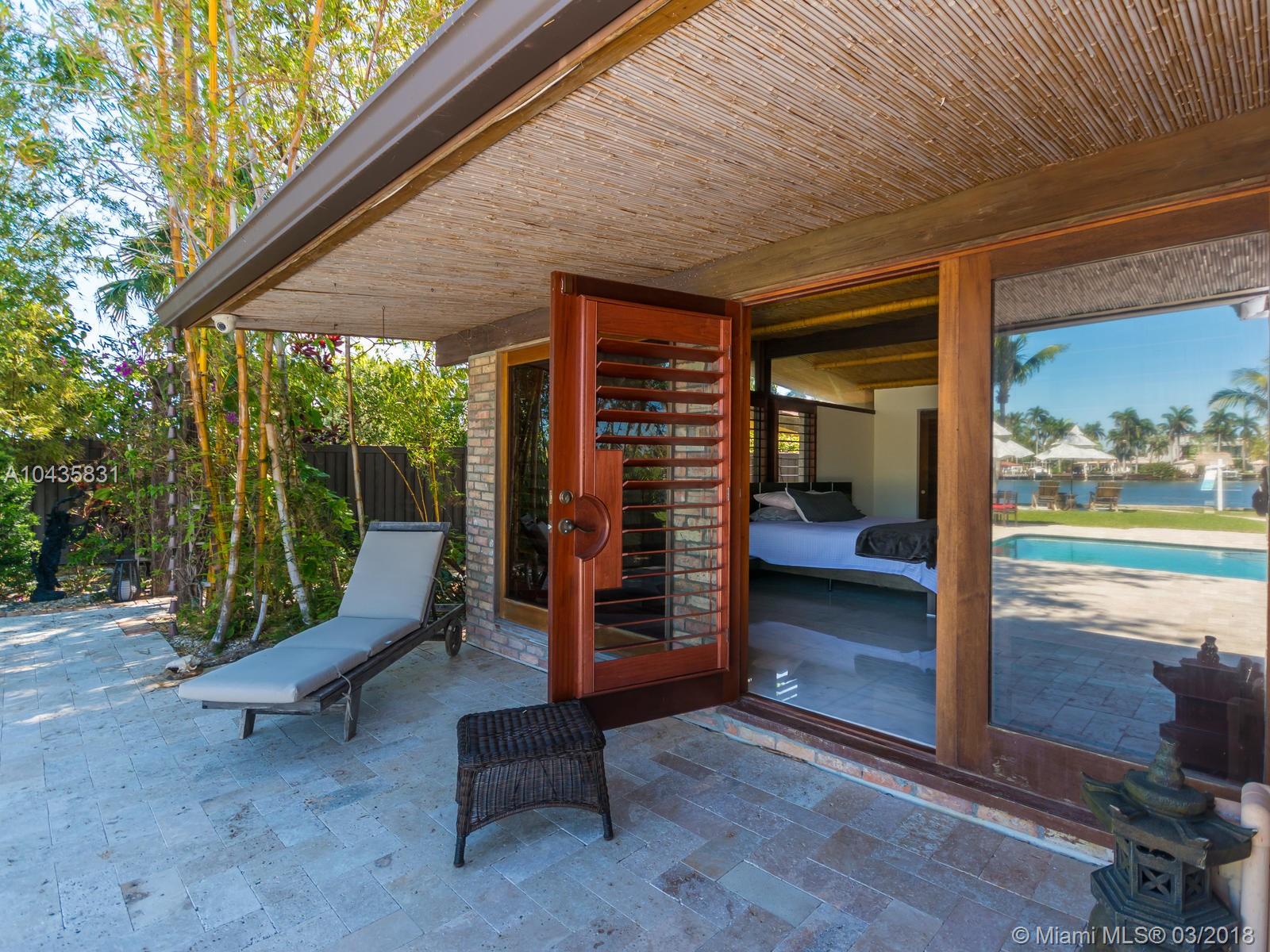 Enjoy ultimate peace, privacy and serenity in this luxurious ZEN waterfront estate in Hollywood Lakes. Situated on a private corner oversized waterfront lot, on a dead end street. This residence offers captivating views of the intracoastal, a private boat docks, huge swimming pool with brand new stone patio area, and tropical gardens with mature landscaping.The open and airy interior features an abundance of natural light, sprawling entertaining spaces complete with an open gourmet kitchen with top of the line appliances, natural gas, Carrera marble floors throughout, 2 master suites that open up to the outside, the third bedroom is currently used as a gorgeous walk-in closet, there is also a 2000sf studio space with a loft that is perfect for an office or extra bedrooms
