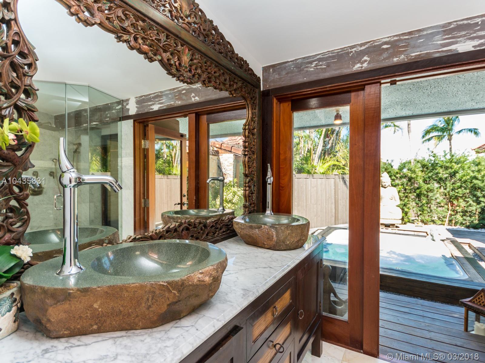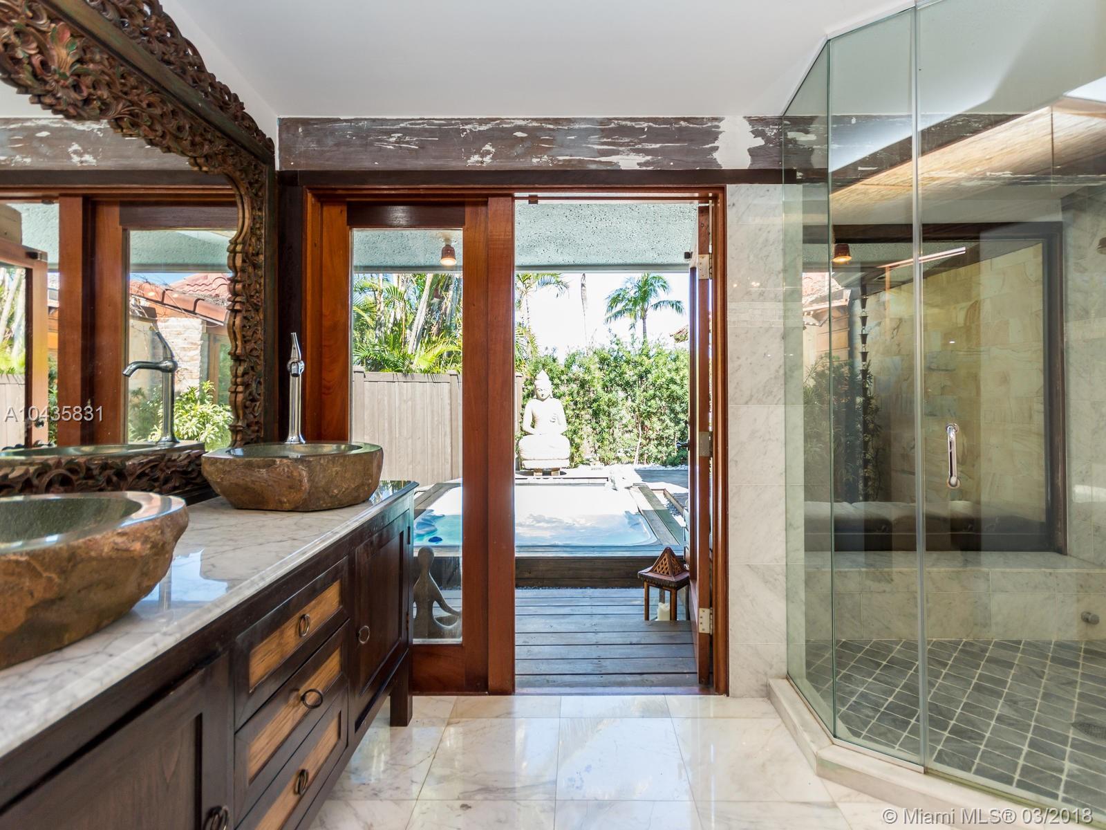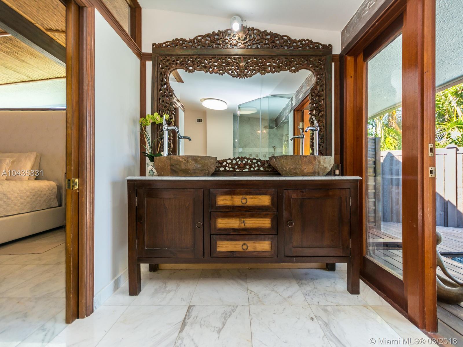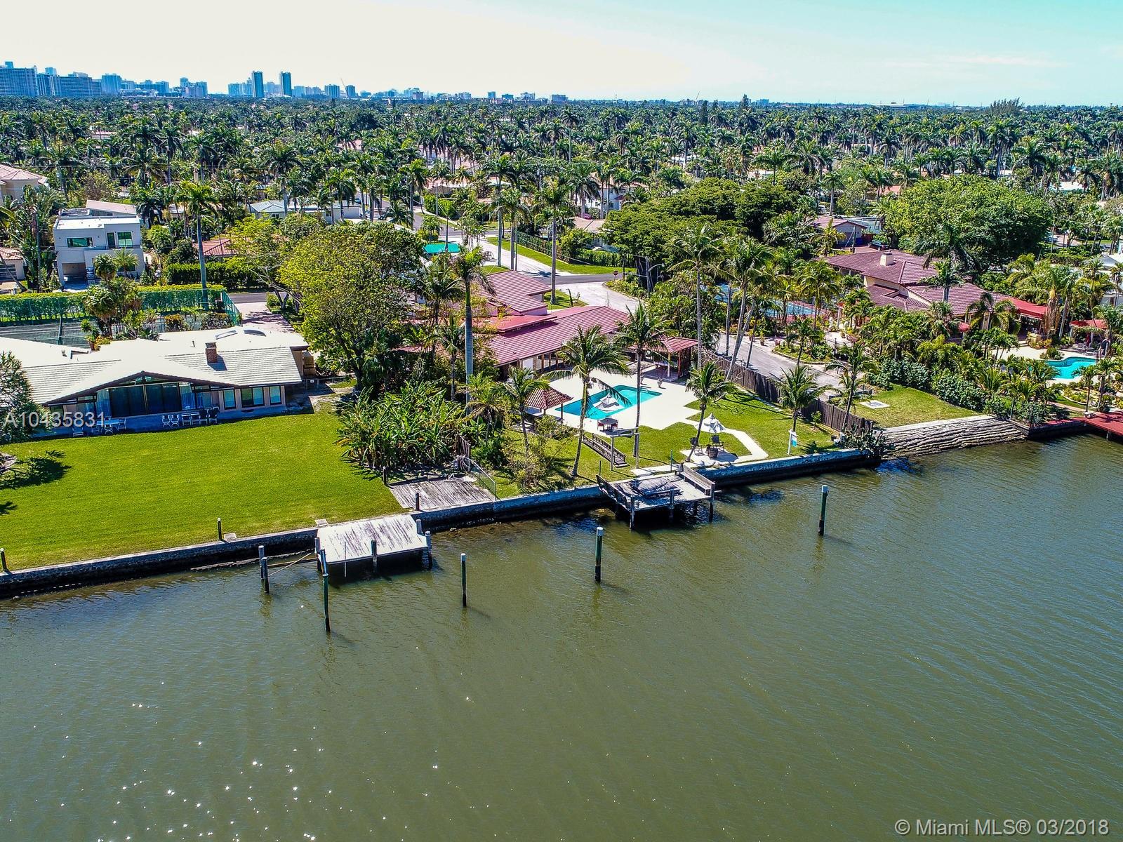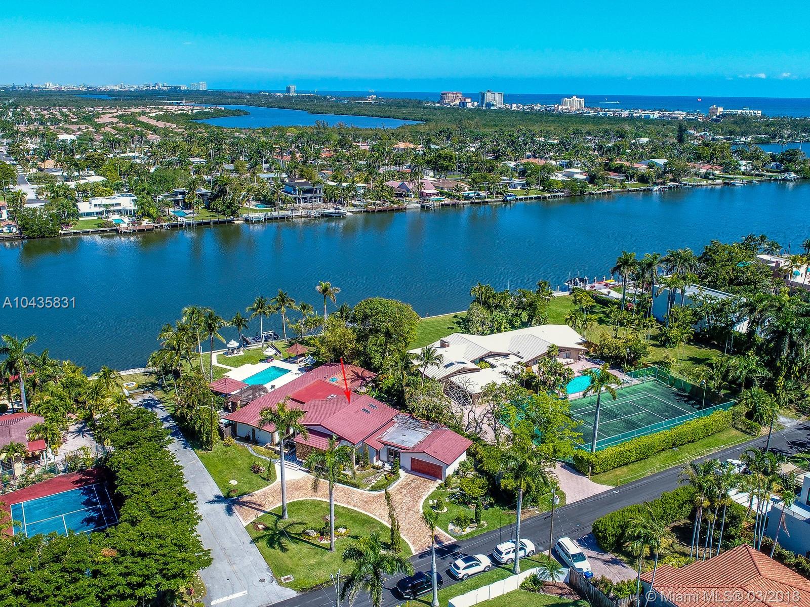 Enjoy ultimate peace, privacy and serenity in this luxurious ZEN waterfront estate in Hollywood Lakes. Situated on a private corner oversized waterfront lot, on a dead end street. This residence offers captivating views of the intracoastal, a private boat docks, huge swimming pool with brand new stone patio area, and tropical gardens with mature landscaping.The open and airy interior features an abundance of natural light, sprawling entertaining spaces complete with an open gourmet kitchen with top of the line appliances, natural gas, Carrera marble floors throughout, 2 master suites that open up to the outside, the third bedroom is currently used as a gorgeous walk-in closet, there is also a 2000sf studio space with a loft that is perfect for an office or extra bedrooms