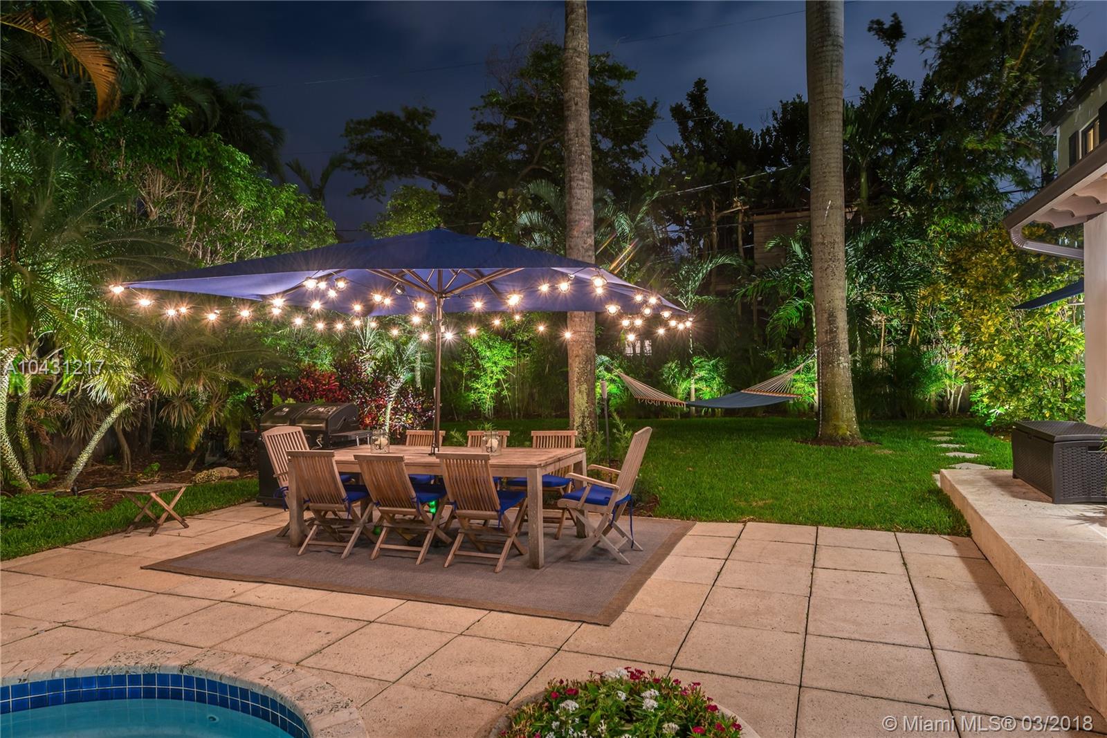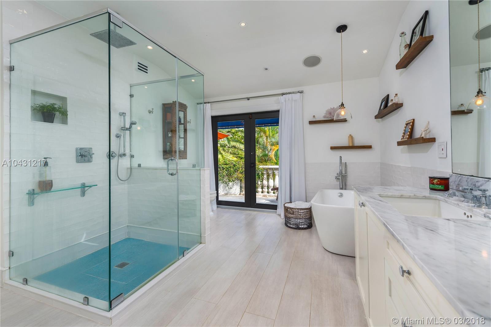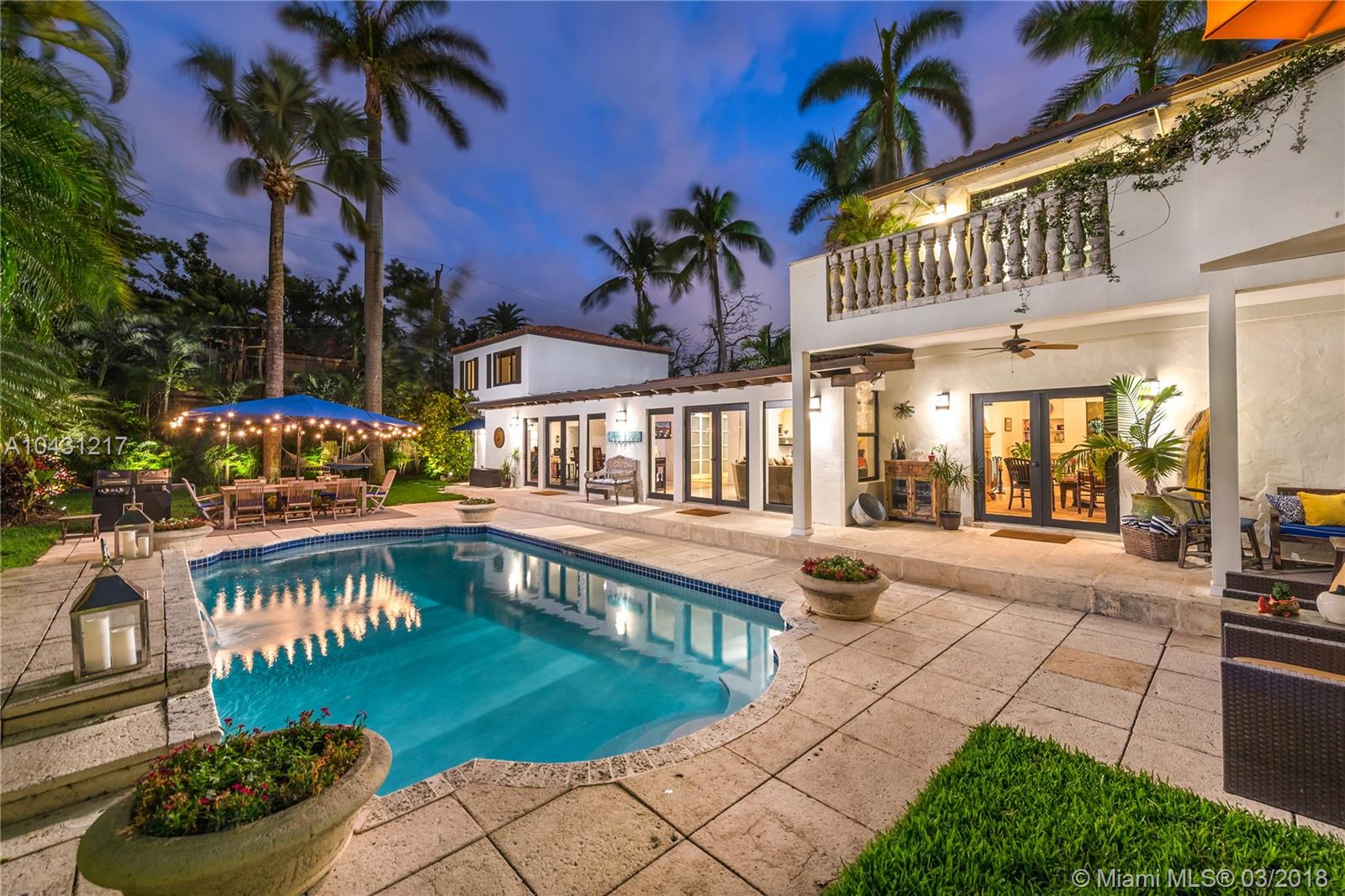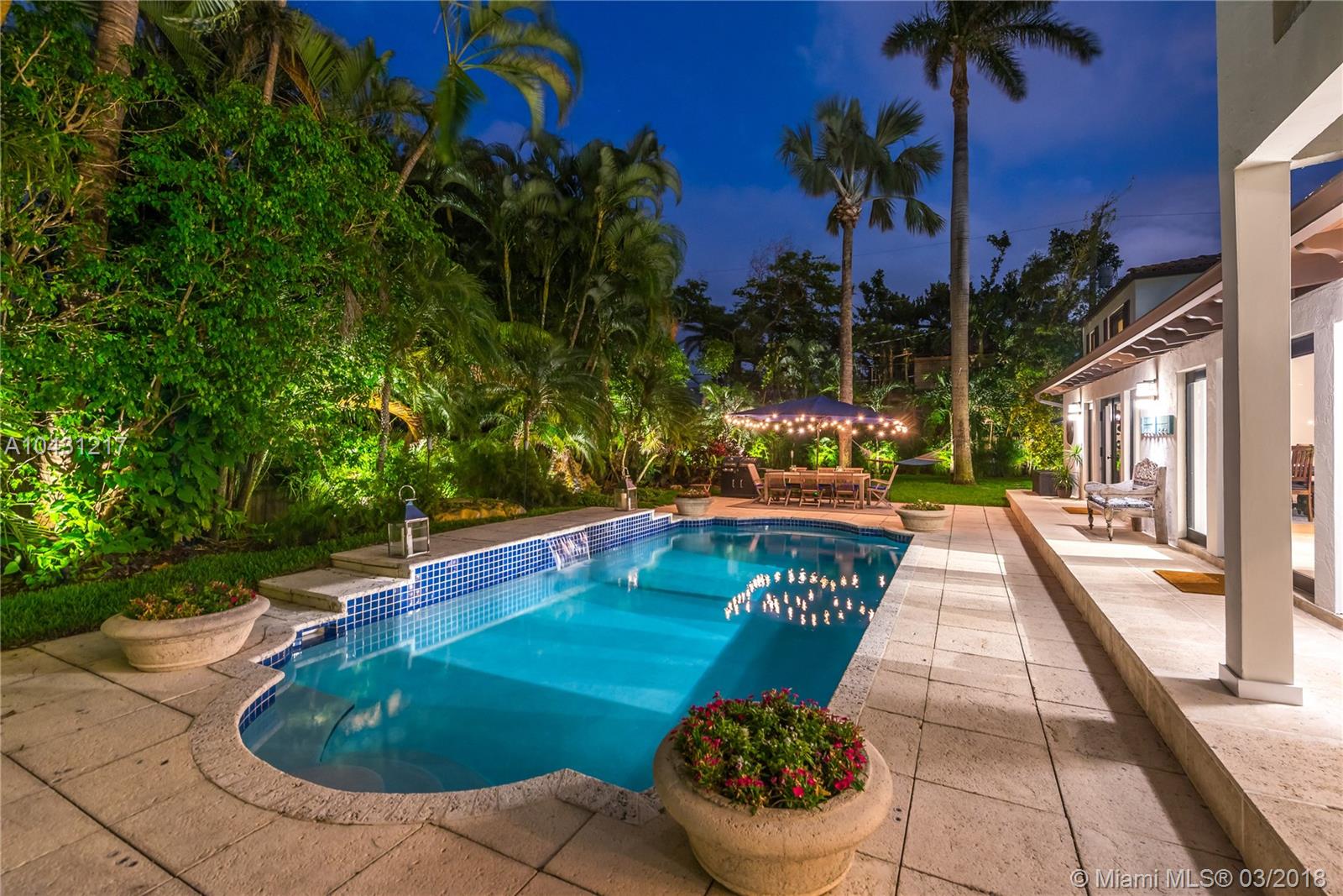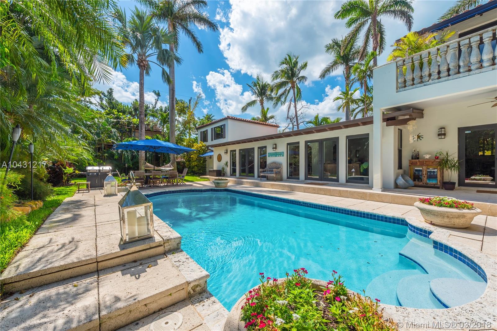 Enjoy living in a lush tropical paradise in the heart of Miami Beach! This 5 bed 5.5 bath home sits on an oversized 11,336 SqFt corner lot with surrounding wall/gate offering utmost privacy and plenty of parking. Fully renovated this home features a gourmet kitchen with professional grade Thermador appliances, hurricane impact windows and doors, and marble and wood floors. Open living area is surrounded by French doors creating seamless flow for indoor/outdoor entertaining. Large master suite offers custom cabinetry and walk-in closet and is completed by a spa-like master bath with double sinks, rainfall shower, and soaking tub. Dine al-fresco on the 2nd floor balcony overlooking your sparkling saltwater/solar heated pool or relax next to a tranquil Zen water garden.
