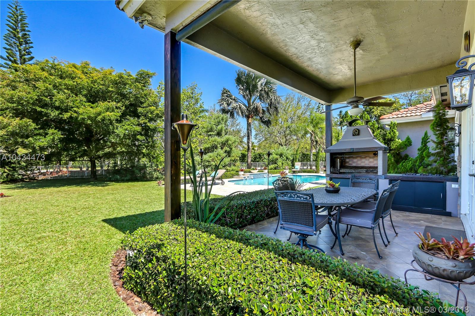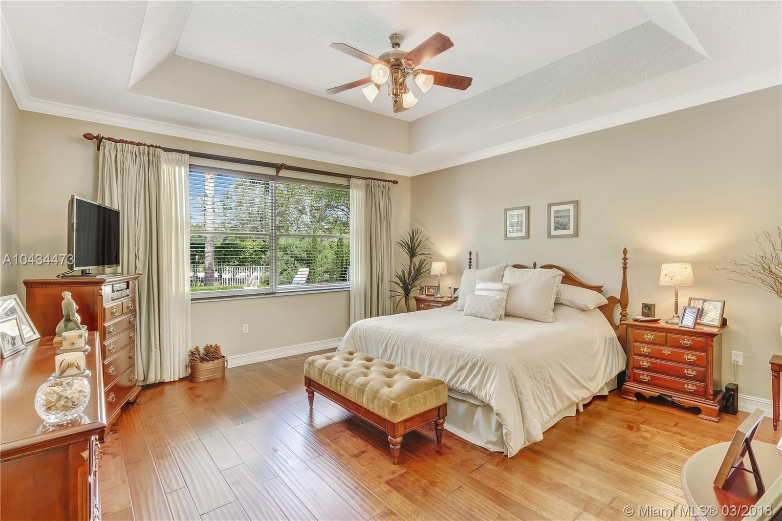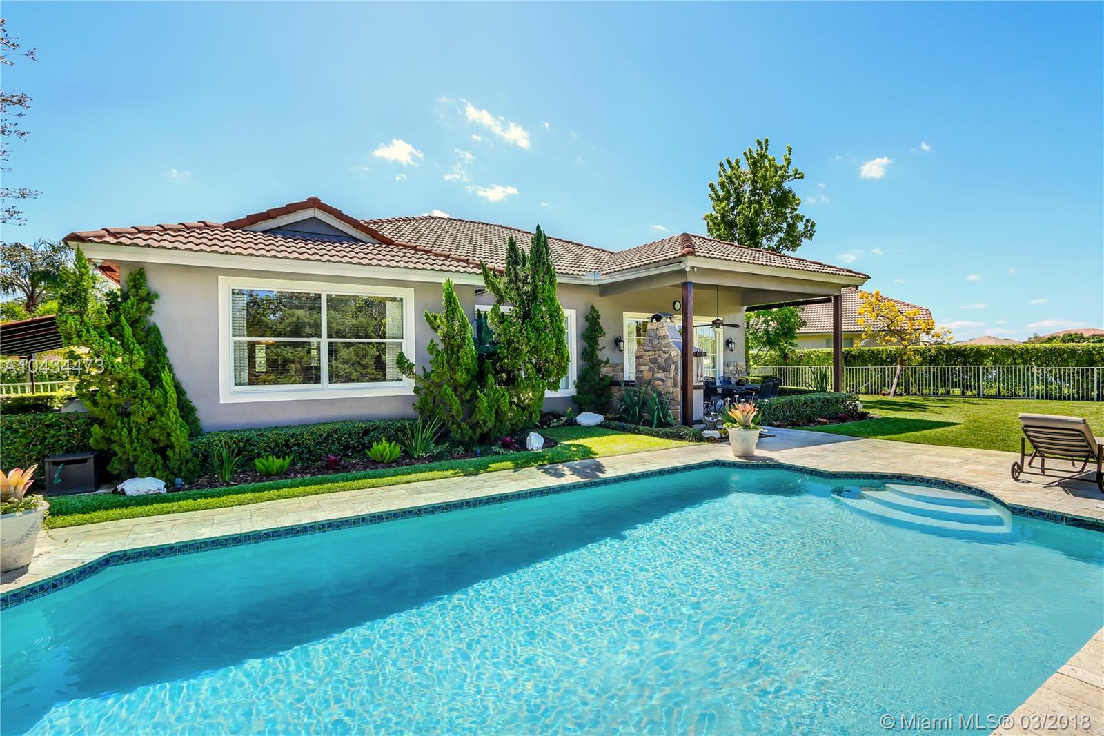 Lovely pool house in a beautiful and prestigious guard-gated community. 4 beds w/3 full baths with crown moldings, ceramic and laminated floors throughout; split plan w/big master suite, custom upgraded kitchen, baths, and more. Profesional landscaping, spacious laundry/utility room next to oversized 2 car garage. kitchen/breakfast area open to spacious family room, all looking out over your own private, sparkling pool oasis with waterfall. Backyard/patio next to the lake perfect for parties and BBQs! Updated & elegant. Resort-like community amenities and great schools close to the property. You have to see it!!! Come, make this model house your home!