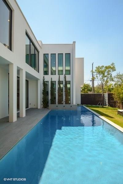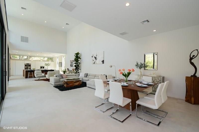 Stunning modern masterpiece with unparalleled custom finishes is now complete & ready for occupancy! Expansive open spaces blended with floor-to-ceiling impact glass fills the home with natural sunlight. Huge open great room w/ soaring 20' ceilings & 3 sets of sliders opening seamlessly to a private pool/patio/garden area. Sleek chefs kitchen featuring dual islands, Italian cabinetry & quartz counters. 3 generous sized en-suite guest rooms & over-sized master suite w/ sumptuous spa-like bathroom.