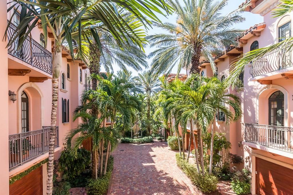 Absolute Luxury! This 3/3.5 corner townhouse features private pool with lavish garden, two balconies & two giant decks all Flagstone. Spacious, all wood and marble interiors. Designer kitchen with gas stove & beautiful black Galaxy Granite counters. Private elevator, metal railings, mammoth media room, formal living & dining rooms, sitting area in master, french doors galore, oversized 2 car garage! Asking price includes Fortuny chandeliers, custom drapes & ceiling fans. New A/C units & Bosch dishwasher.