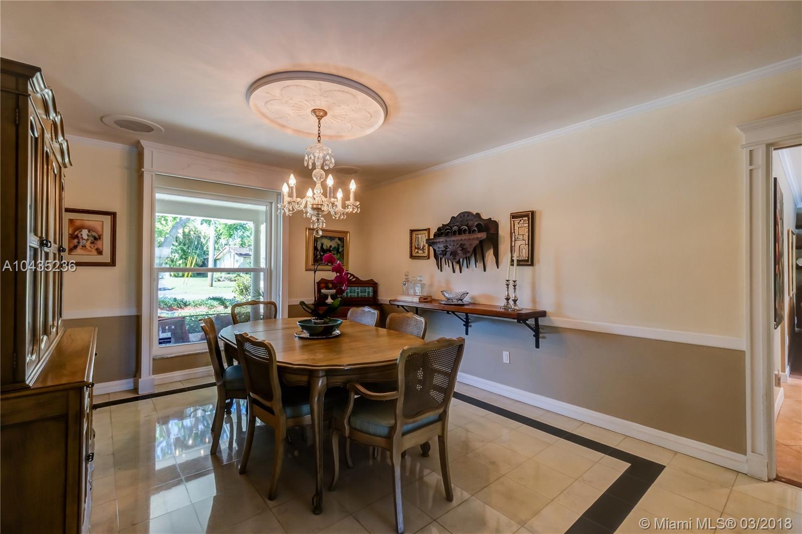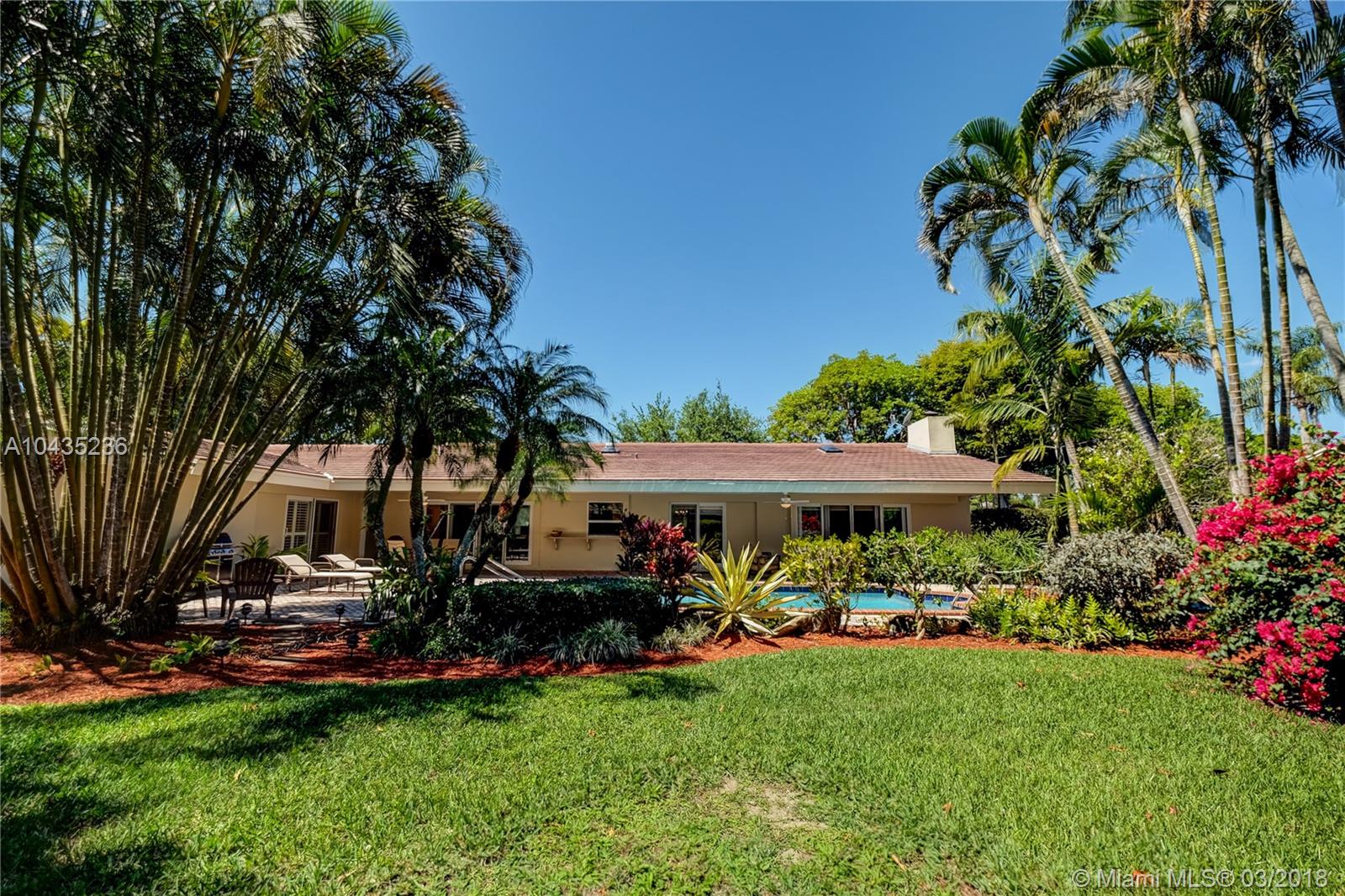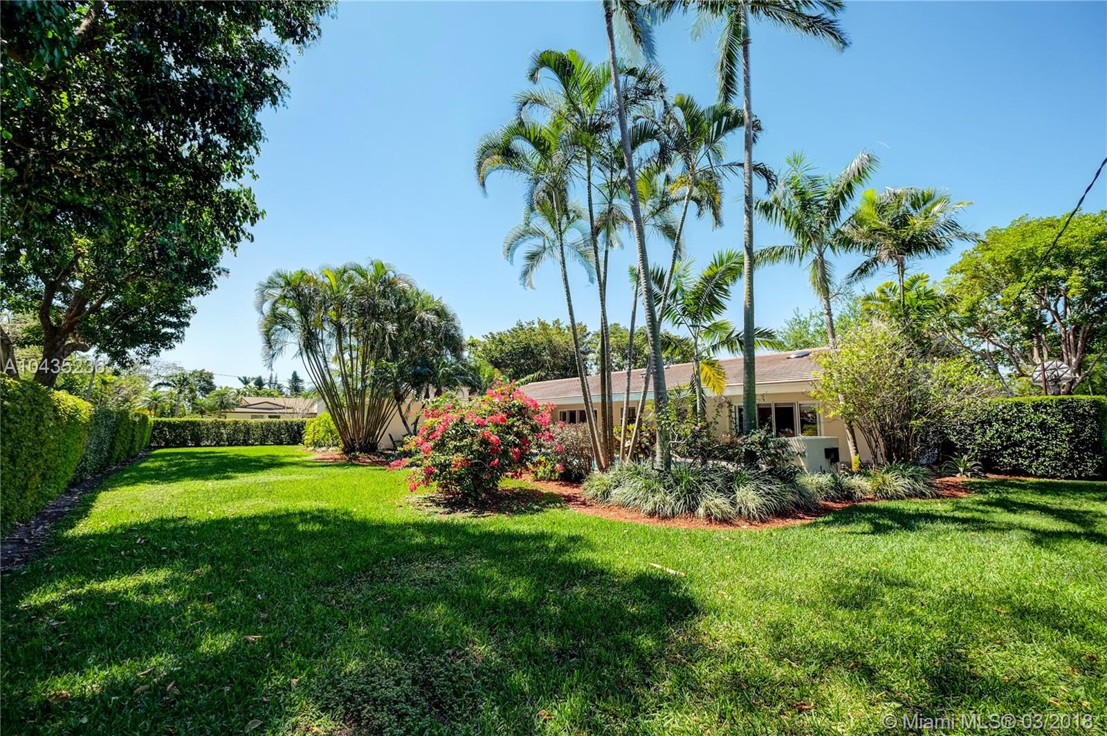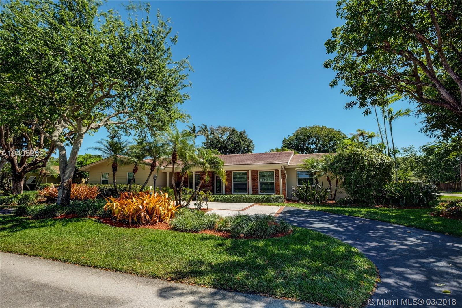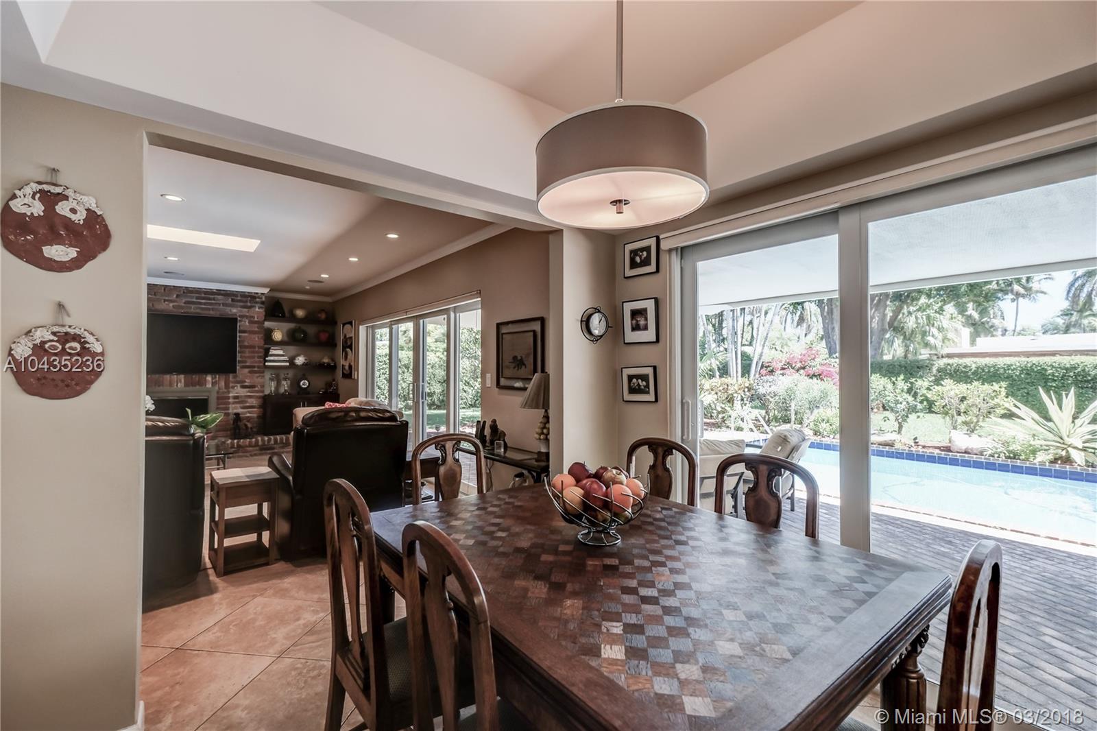 Gracious, spacious 3677 adj. sq ft family home on beautiful and big corner lot on child friendly street in the heart of Pinecrest with nice updates: all impact glass windows and doors, all baths redone recently, beautiful wood work with crown, chair rail and door moldings, updated open kitchen and "Bonus room," indoor laundry room, and picturesque brick fireplace! Lush, private, and pretty pool/patio/yard. All three Palmetto schools. Extremely well maintained and updated over the years by current long term owners. See MLS attachments.