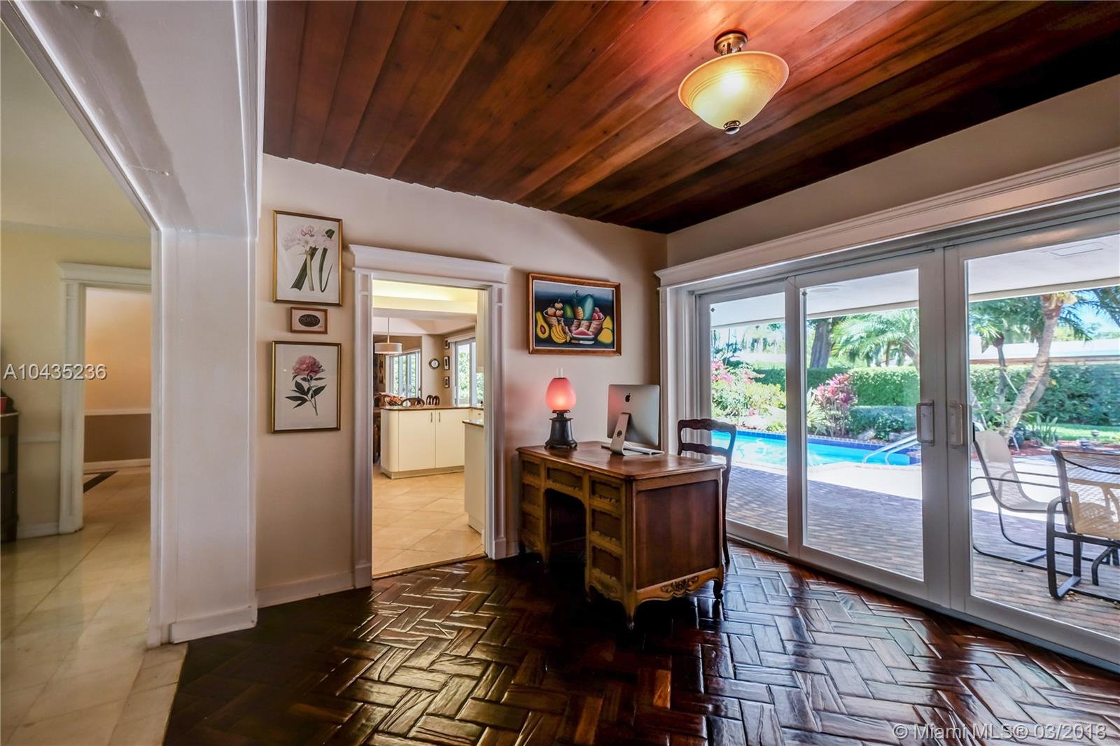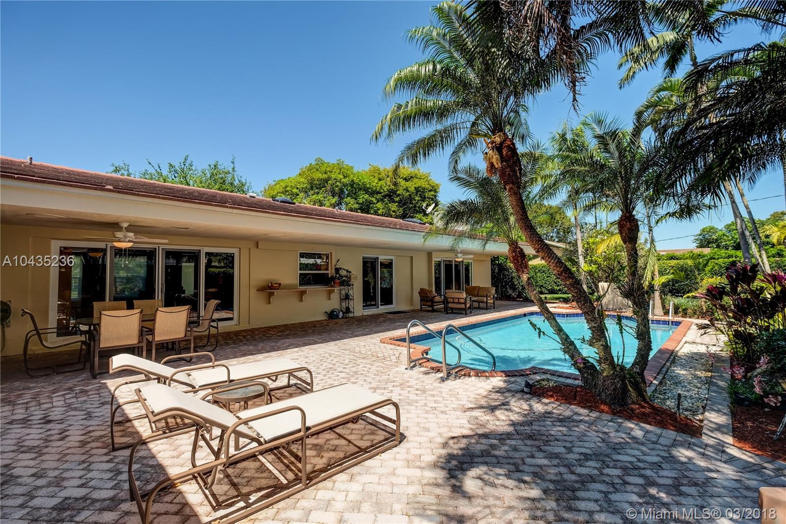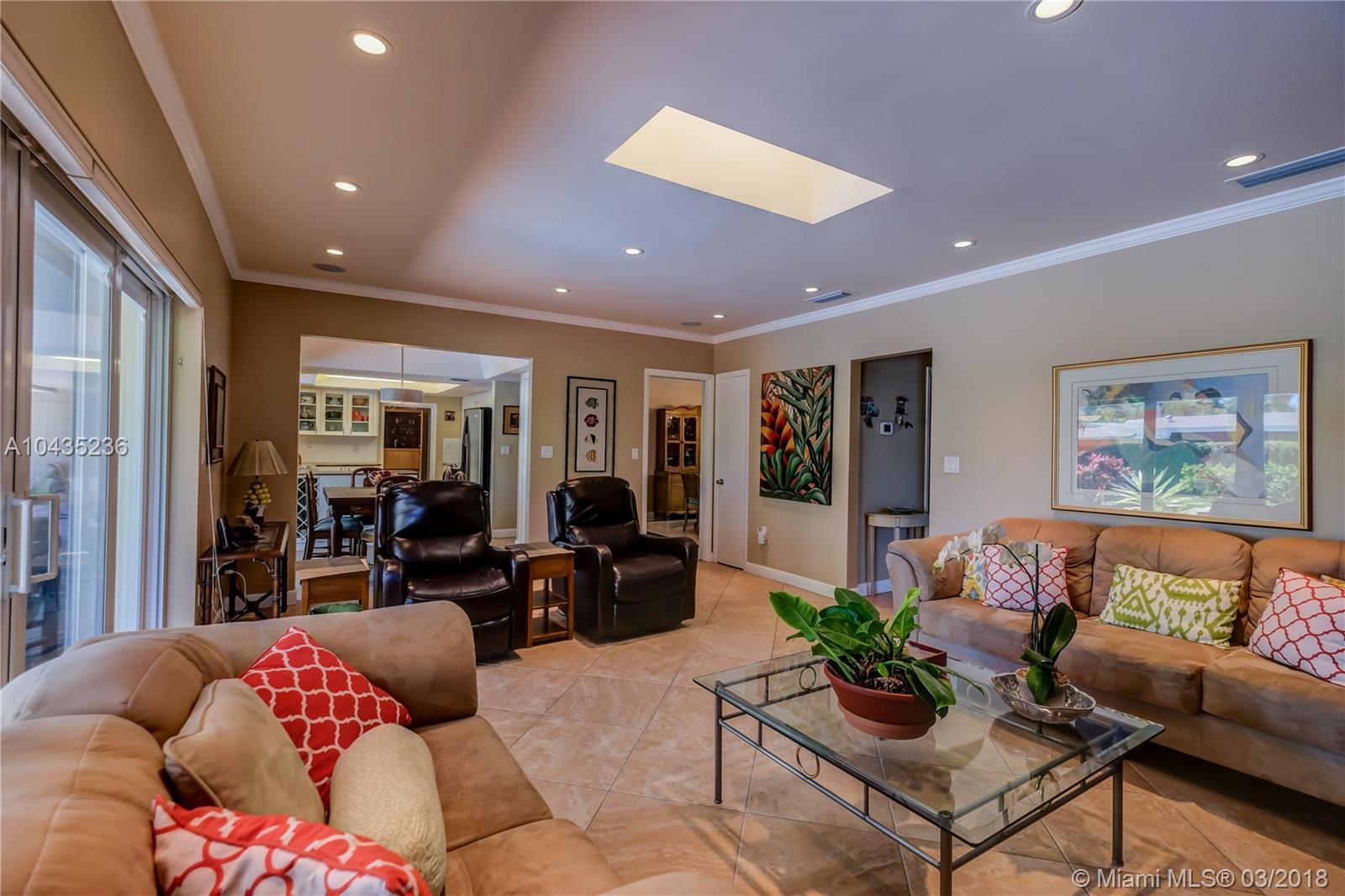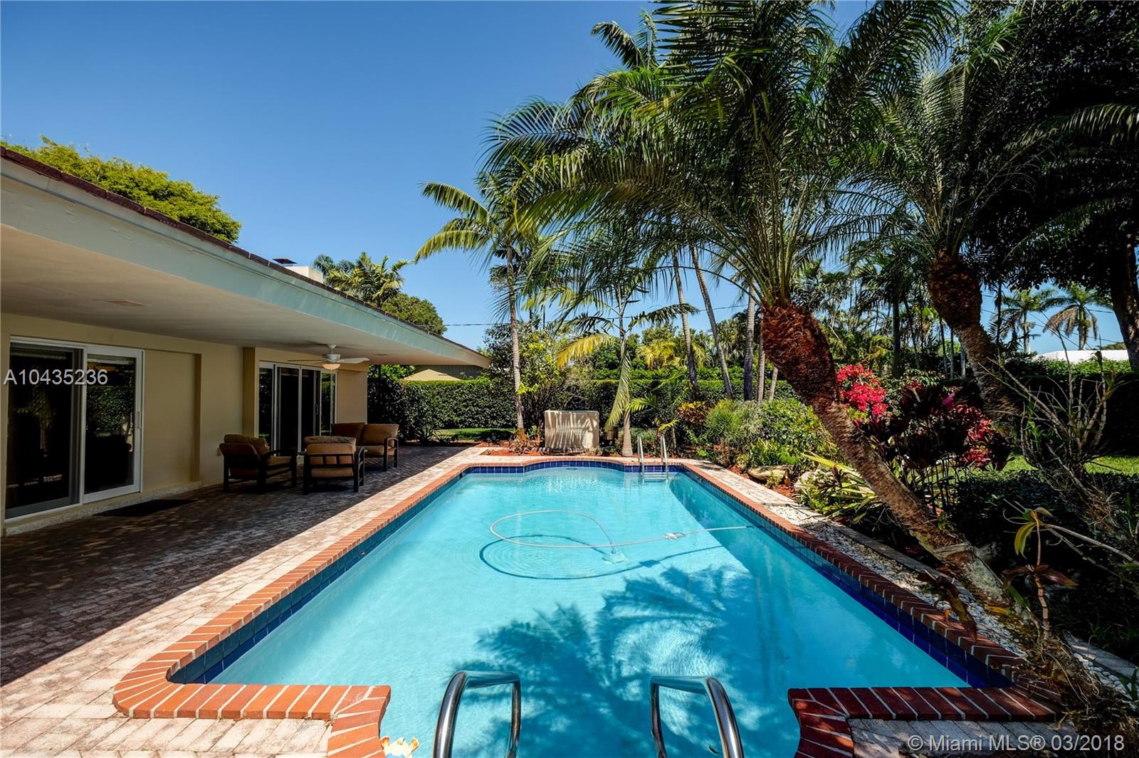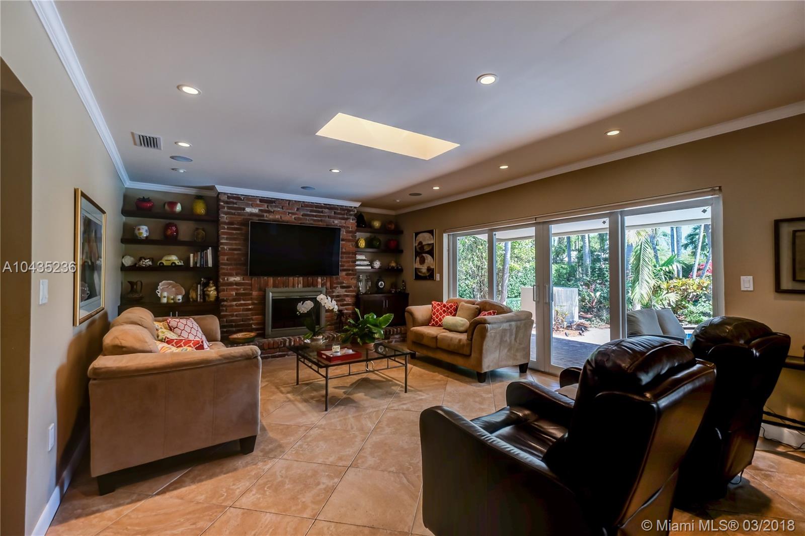 Gracious, spacious 3677 adj. sq ft family home on beautiful and big corner lot on child friendly street in the heart of Pinecrest with nice updates: all impact glass windows and doors, all baths redone recently, beautiful wood work with crown, chair rail and door moldings, updated open kitchen and "Bonus room," indoor laundry room, and picturesque brick fireplace! Lush, private, and pretty pool/patio/yard. All three Palmetto schools. Extremely well maintained and updated over the years by current long term owners. See MLS attachments.