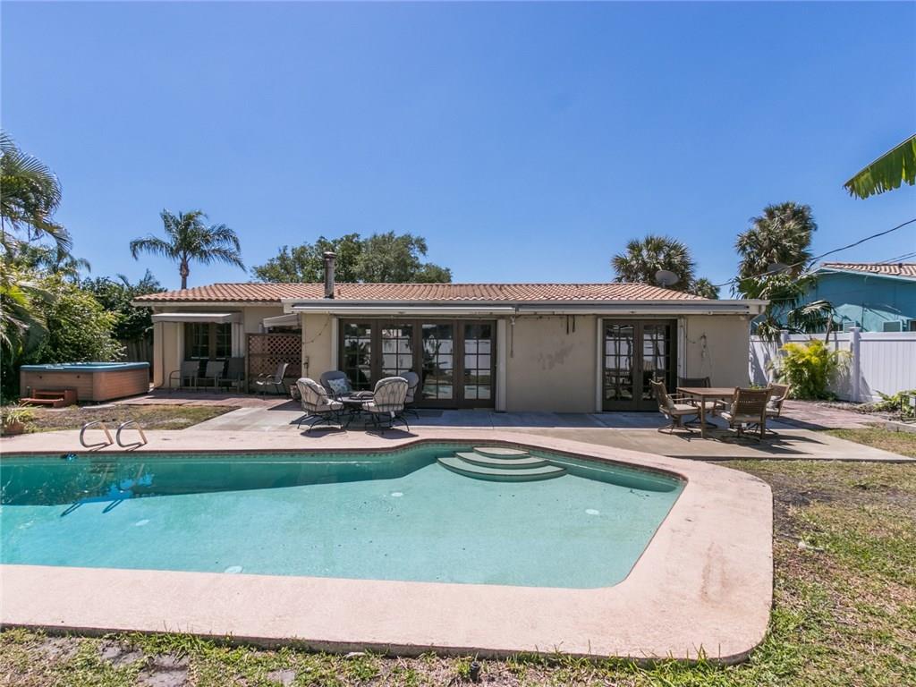 Great home for vacation rental property! Just over the bridge to the beach. Can be sold turn key furnished, ready to start making money immediately! New A/C, New electrical, New PVC fence, New washer and dryer, New patio, pavered circular drive. New closet built-ins, updated kitchen and appliances, tankless hot water heater, Huge retractable electric awning, Accordion shutters on all windows, and freshly painted interior. Private pool and hot tub! Close to lots of great restaurants, as well as the beach!