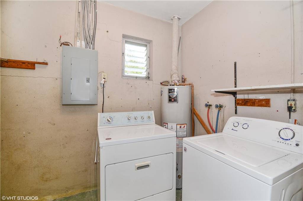 Smell the Ocean! Best Value East of US 1! Less than 2 miles to Ocean! Immaculate, Move in Condition! 2 large bedrooms, 1 car garage, with huge, private fenced backyard with custom gate, lots of trees. Perfect for sunbathing, pets, or parking your boat or camper under the covered parking! House has lots of storage and closets, 18" tile throughout home except carpet in master bedroom. Impact windows on east side of house! Shed in yard. Pride of the owner! Perfect for starter family, snowbird, or retiree!