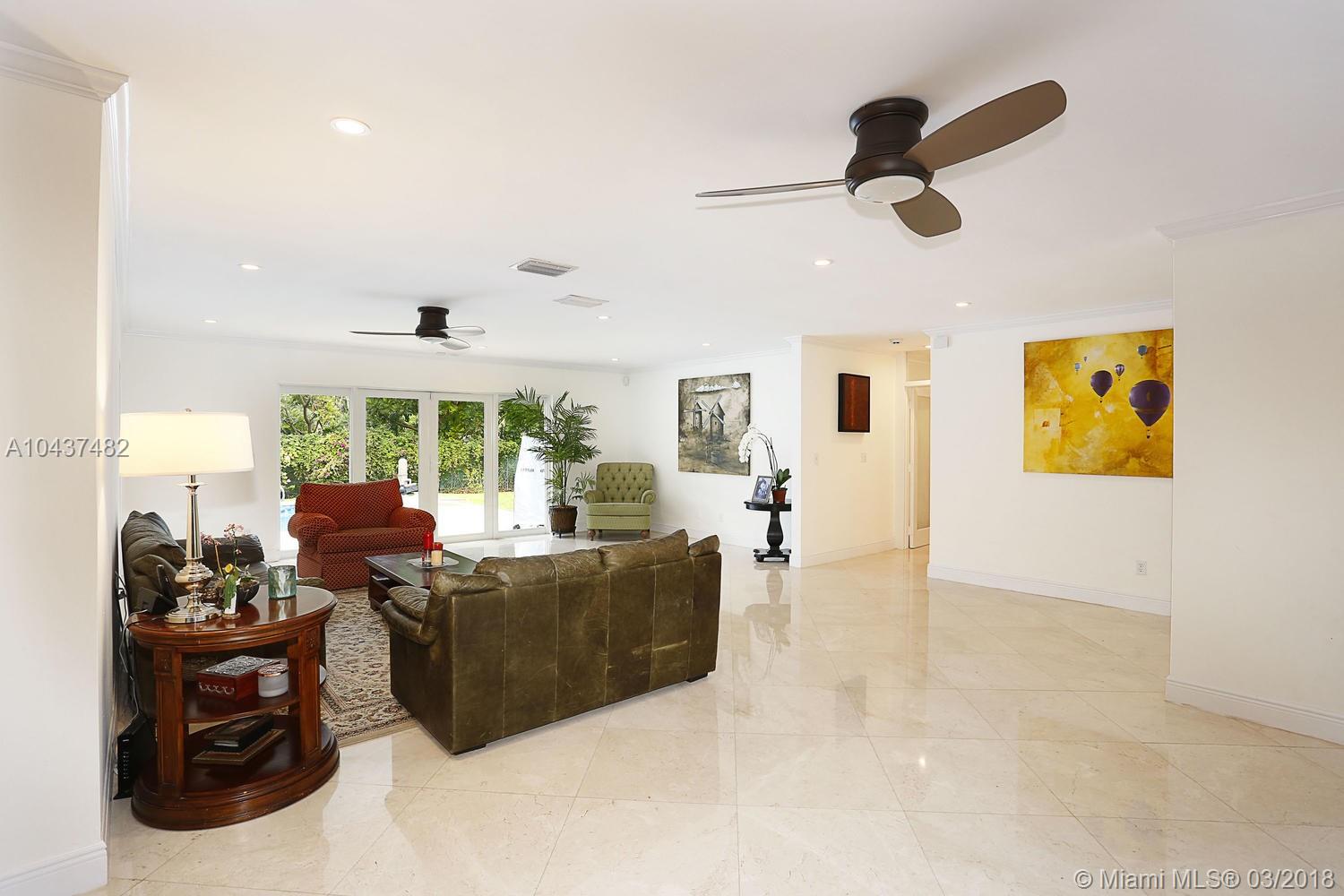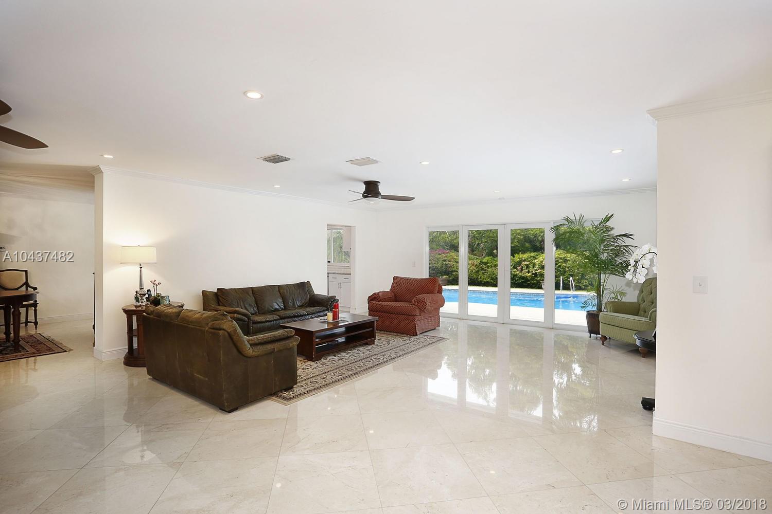 North Pinecrest gem on pretty and quiet street. Completely renovated and remodeled with new roof, brand new granite cook's kitchen with top of line appliances. Pretty baths. Marble and porcelain wood tile flooring. Light and bright! Open and airy! High-impact windows and doors. Lovely plantation shutters throughout. Fabulous floor plan. Inviting open pool with travertine deck surrounded by lush landscaping. Beautiful and private backyard. Great executive home for all family comforts and entertaining! Execellent north Pinecrest location with easy access to top Pinecrest schools, parks, shopping.. business commuting...A rare find! Must see! Hurry!