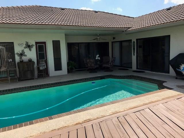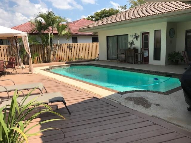 Outstanding updated beauty truly in move-in condition! Enjoy travertine flooring in common area, remodeled kitchen with granite, stainless appliances & really nice cabinets! Oversized family room overlooking pool with nice size covered patio, wood decking & relaxing cabana! Private fenced yard perfect for entertaining! The master suite features a walk-in closet and spa-like remodeled bath. The guest rooms are super large to accommodate king or queen beds & the guest bath is very inviting. Great community!
