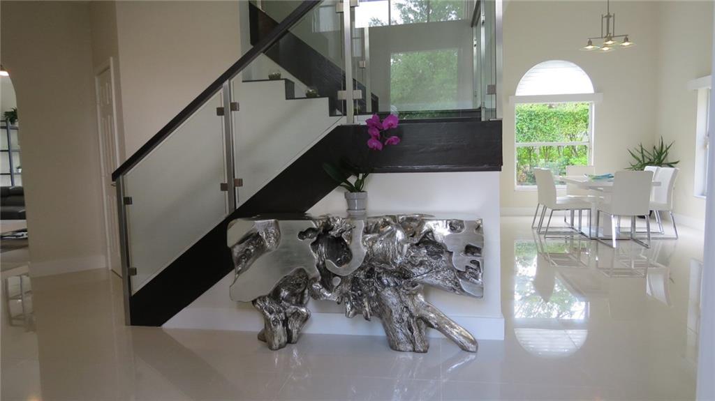 Beautiful contemporary home remodeled with top of the line finishes. Features include a neutral decor, 31" porcelain tile and dark bamboo flooring, remote control Hunter Douglas Silhouettes & a stunning glass & Stainless steel staircase !! The kitchen offer 42" high gloss wood cabinets, SS back splash & kick plate, white quartz counter top, high end SS appliances ! Accordion shutters located on a tropically landscaped lot !! Must see it to believe it, you will fall in love with this house the 4th bedroom has been converted in a office