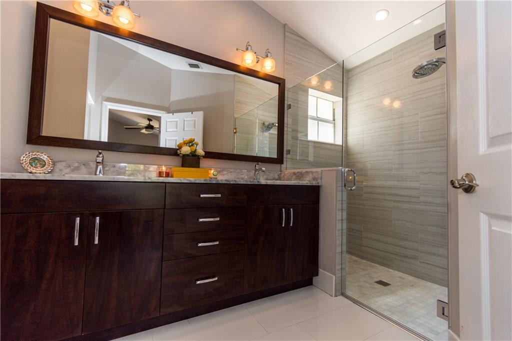 Bautifully remodeled 3/2/2cg lakefront home in Bridgewater! Quartz countertops in kitchen & master bath. Whirlpool SS Appliances. Beautiful dark wood laminate floors. Upgraded baseboards. LED recessed lighting. New A/C 2017. New water heater 2018. Nest A/C control system & Vivint security system w/ multiple cameras. Hurricane shutters. Very open & bright. Large fenced yard w/ room for a pool! HOA handles all landscaping & irrigation. Community pool & clubhouse. Walking distance to Deicke Park!