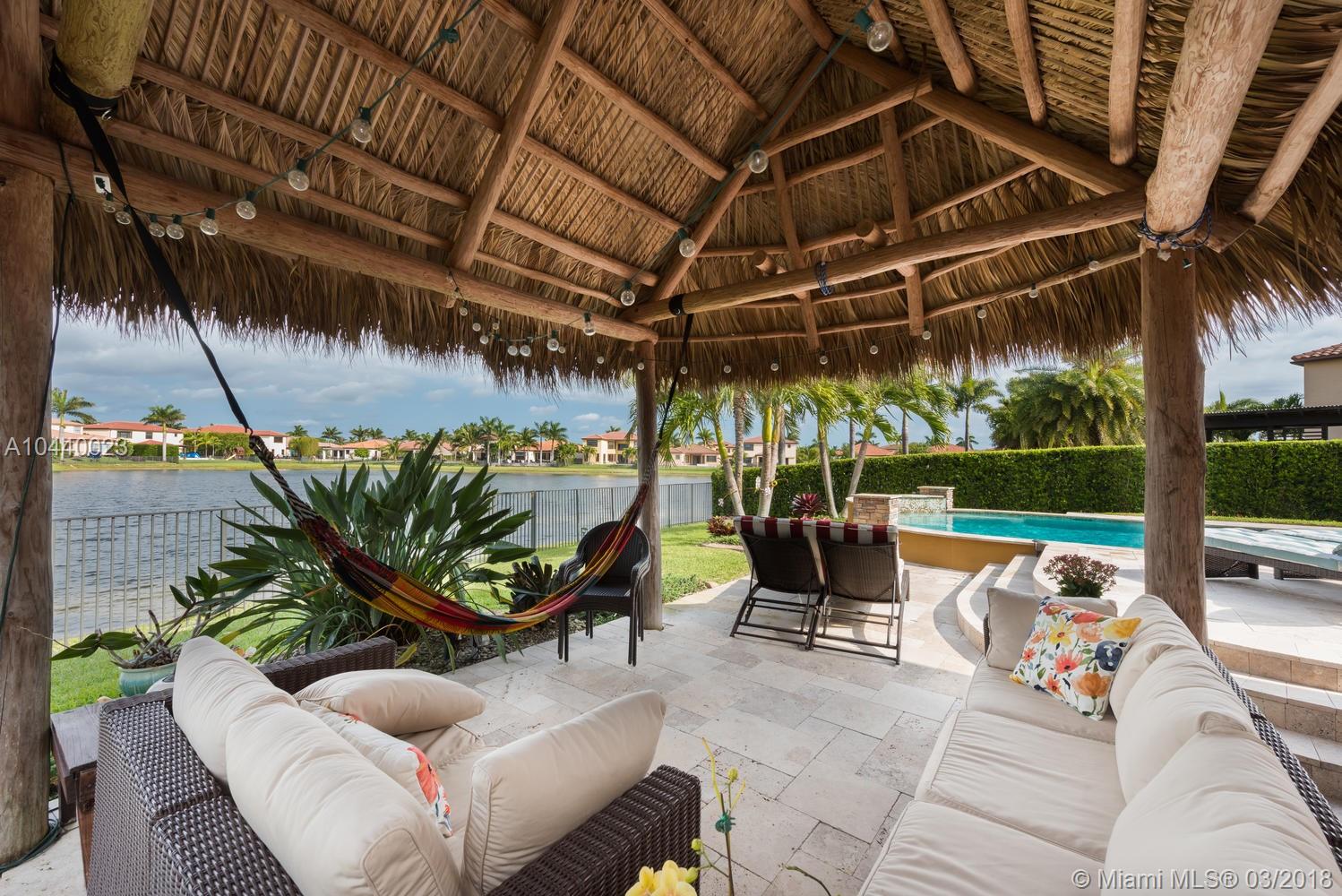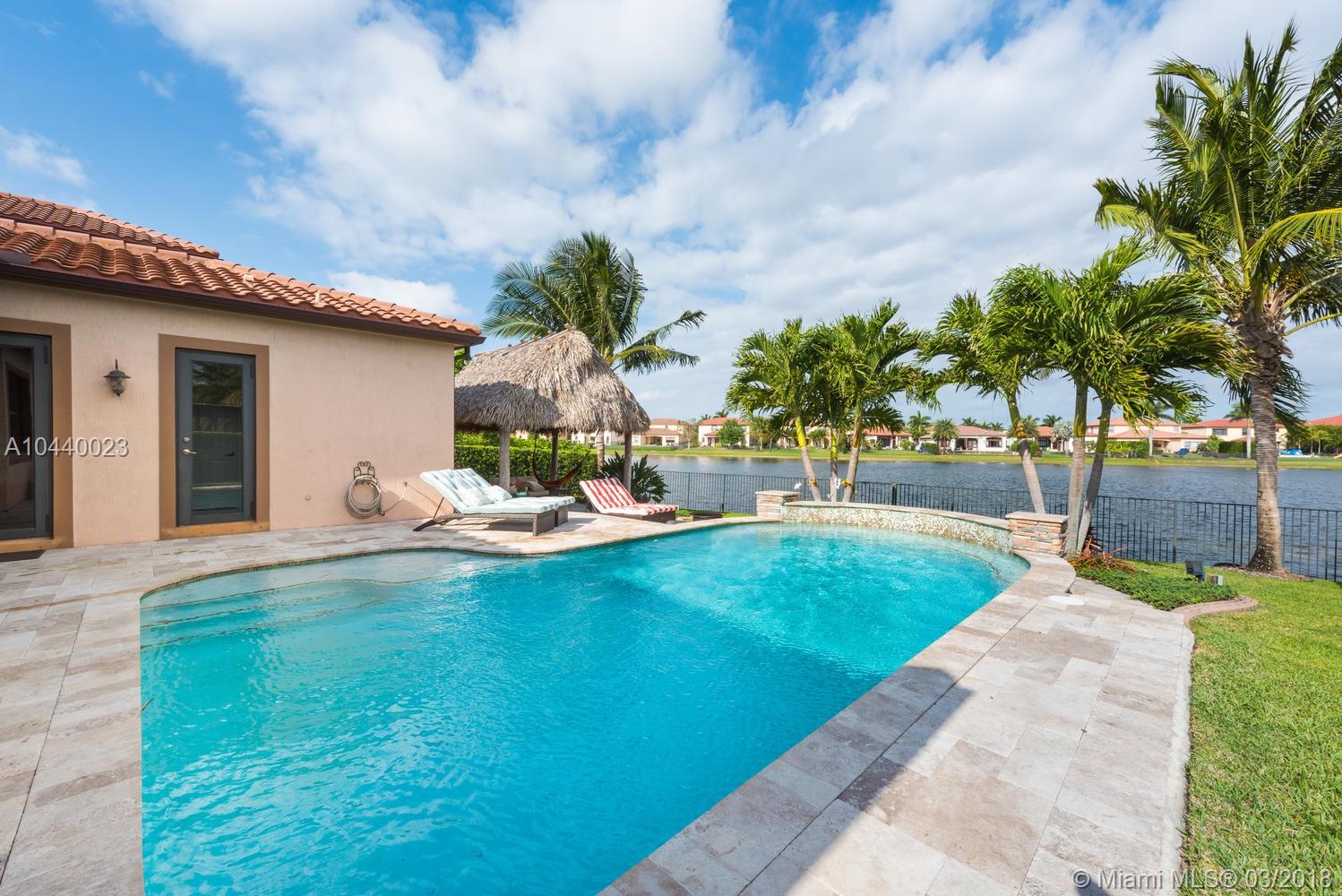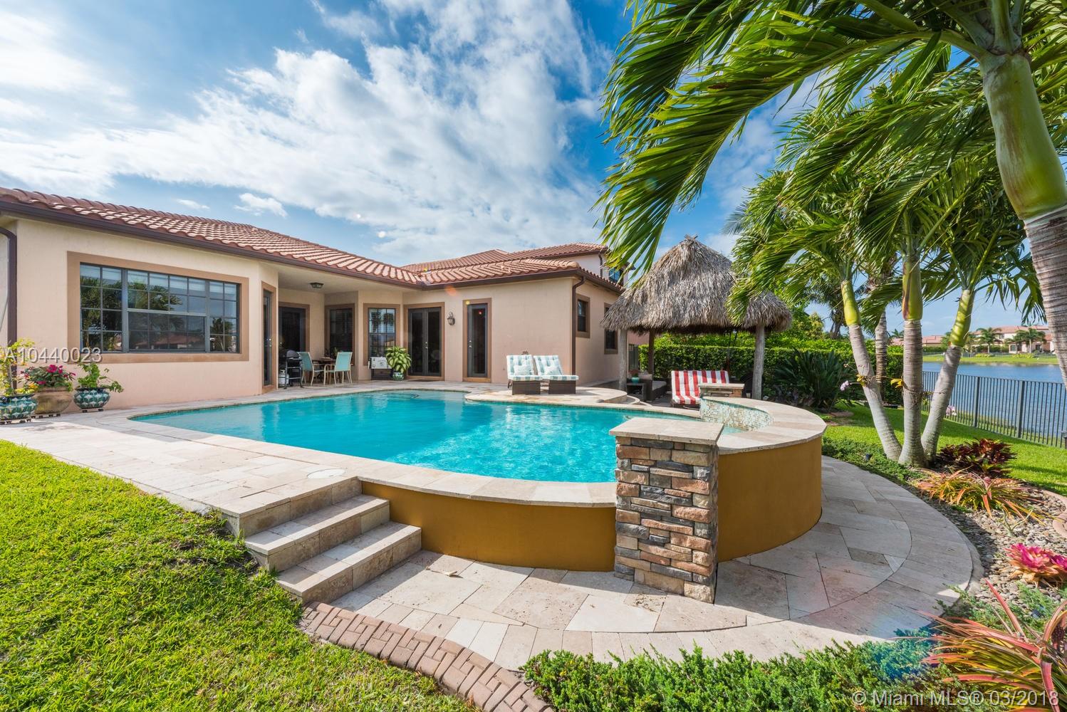 ABSOLUTELY GORGEOUS ESTADA POOL AND LAKEFRONT HOME ON PREMIUM COURTYARD LOT FEATURES 4 BEDS, 3 BATHS ON A TRIPLE SPLIT FLOOR PLAN. BEAUTIFUL OPEN KITCHEN WITH STAINLESS STEEL APPLIANCES, FAMILY, LIVING AND DINING ROOMS. HARDWOOD FLOORING IN ENTRY, LIVING, AND 2ND BED CUSTOM TILE IN KITCHEN, DINING ROOM, AND FAMILY ROOM SPACIOUS MASTER BED SUITE IS PRIVATE WITH SERENE VIEWS SPLENDID BACKYARD. RELAX AND ENTERTAIN FRIENDS BY CHICKEE HUT (RE-THATCHED IN 2017) CUSTOM SALT WATER POOL W WATERFALL & LED LIGHTING WITH MULTIPLE COLORS/SETTINGS; 3 CAR GARAGE ON FENCED PROPERTY.