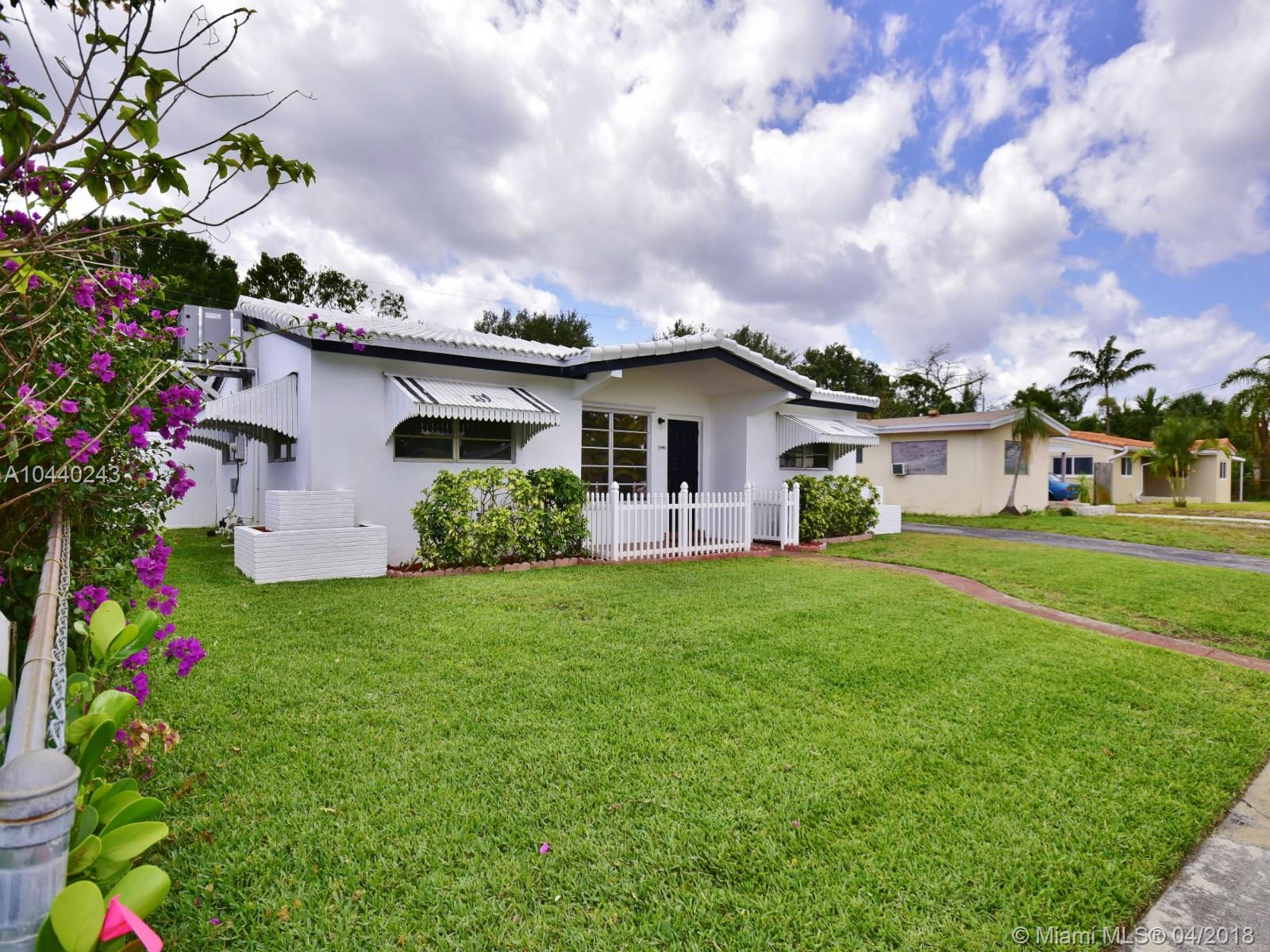 Bright and Airy 50s Pool House located in beautiful Pearl Estates. This adorable 3 bedroom 2 bath home has only had 1 owner and has been impeccably maintained. The kitchen is open to the family room with beautiful black granite counter tops. House has been tented. All electrical has been updated including new breakers and grounding of outlets, new gas water heater, new pool pump, new central A/C, new diamond bright finish in pool, new rainbird sprinkler system and all flat roofs being replaced. The main roof is a barrel tile roof. There are hurricane shutters throughout and a new impact glass sliding glass door opening up to a fabulous outdoor entertaining space over looking the kidney shaped pool. This home is perfect for a family and easy to show.