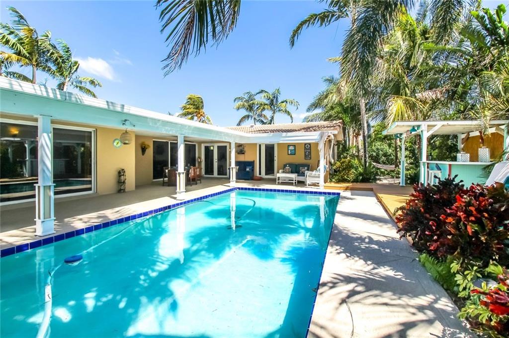 Paradise Found! Beautifully remodeled home with stunning backyard, perfect for the SoFla lifestyle. Feel like you are on vacation every day with the private mature lush landscaping including exotic Palm Trees and pristine pool. Tiki Bar. Covered patio for extended outdoor living. New S tile roof 2015, High Impact windows and doors including high end Rain Front door. Kitchen with large island perfect for entertaining and family gatherings. Porcelain wood look tile and newly restored vintage terrazzo.