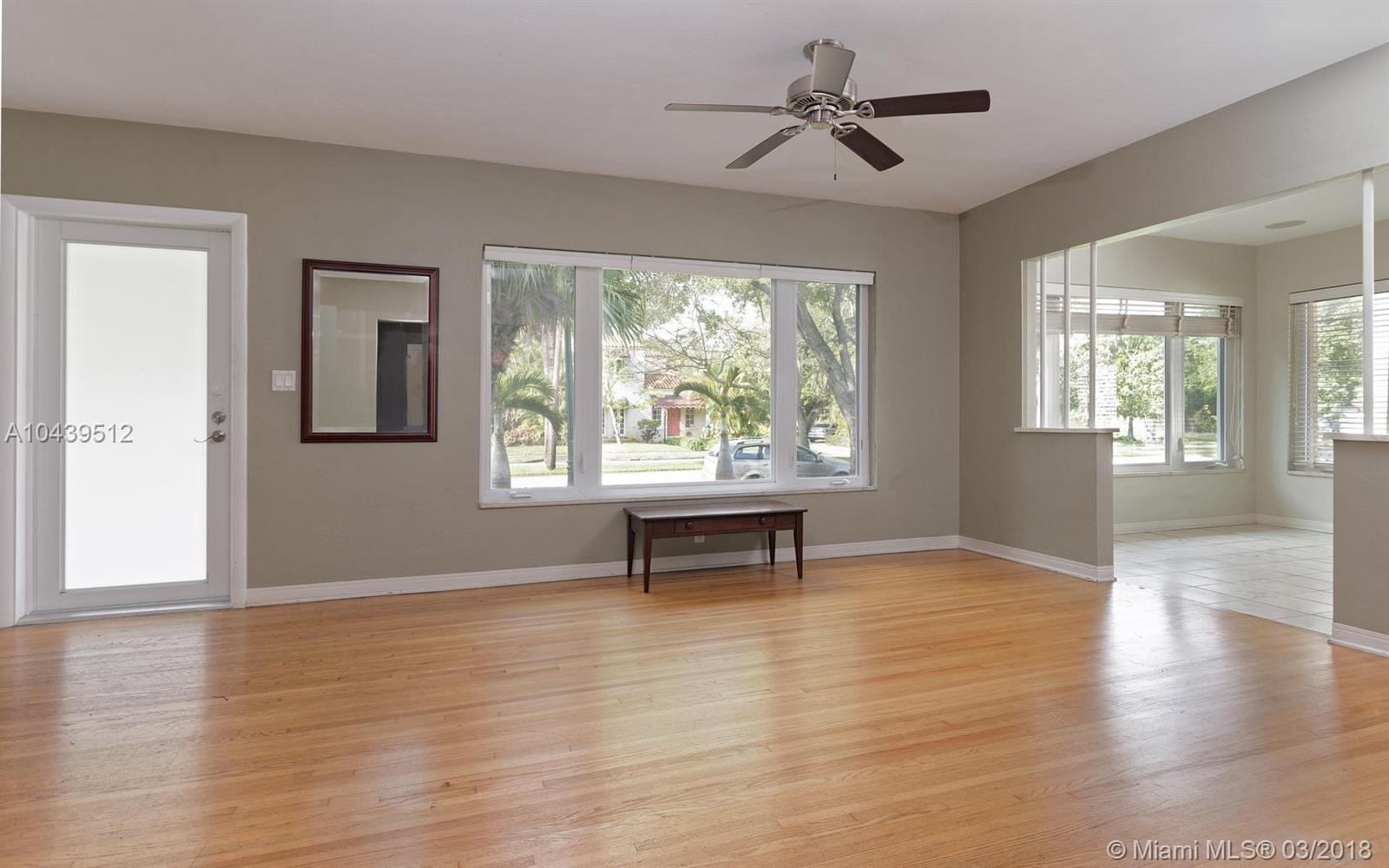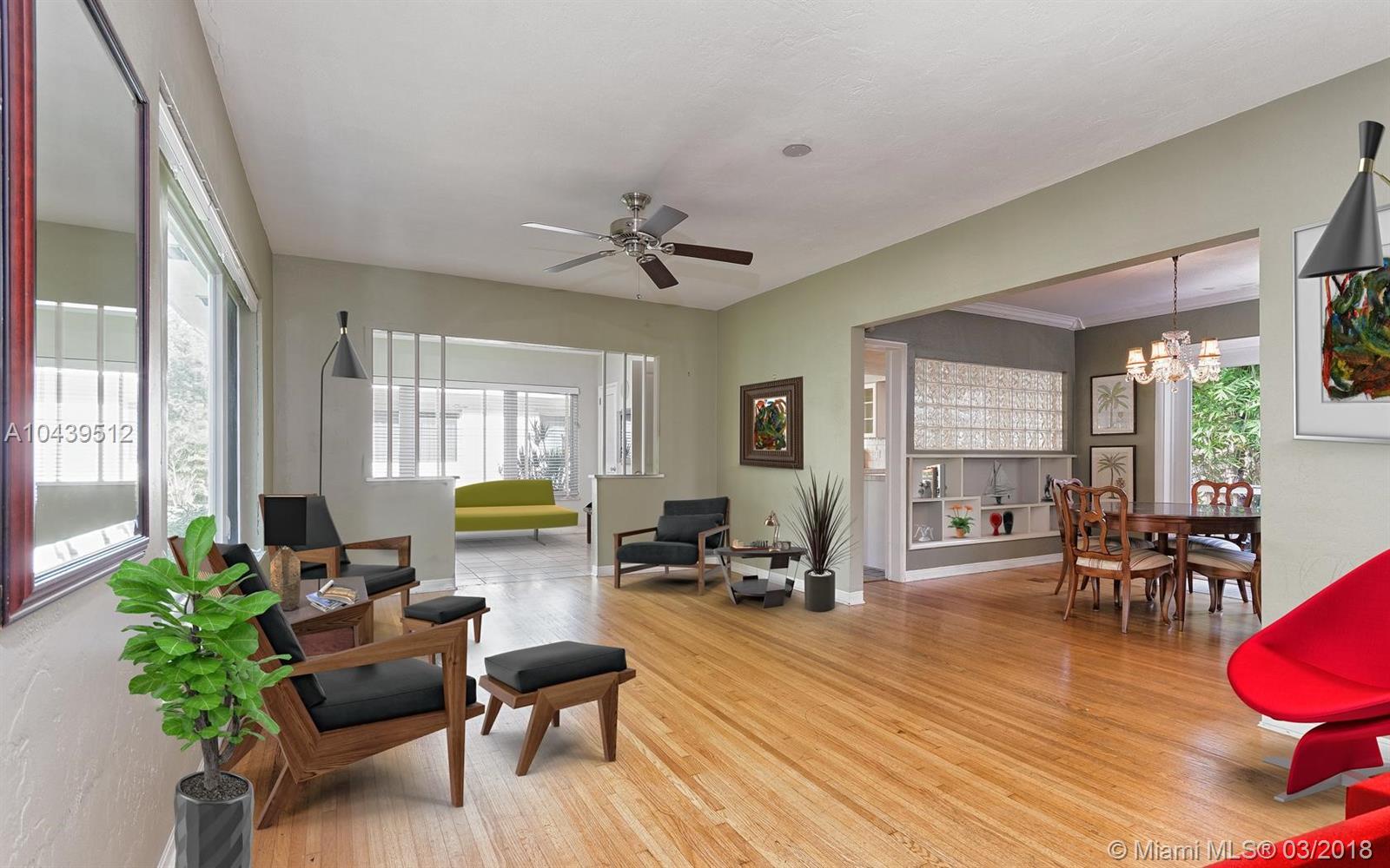 MIAMI SHORES, 2 LARGE BEDROOMS AND 2 FULL BATHS, OFFICE/DEN EASILY CONVERTS TO A 3RD BEDROOM. OPEN FLOOR PLAN, GREAT NATURAL LIGHT THROUGH THE HURRICANE IMPACT WINDOWS AND DOORS. BEAUTIFUL ORIGINAL HARDWOOD FLOORS. BIG LIVING ROOM, FORMAL DINING ROOM AND OPEN KITCHEN. KITCHEN HAS GAS. LARGE INSIDE LAUNDRY ROOM. GREAT CLOSET SPACE. BIG PRIVATE FENCED YARD WITH DECK AND ROOM FOR A POOL. ATTACHED ONE CAR GARAGE. WALKING DISTANCE TO SHOPS, CAFES AND MORE.