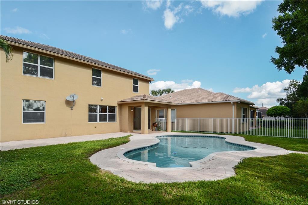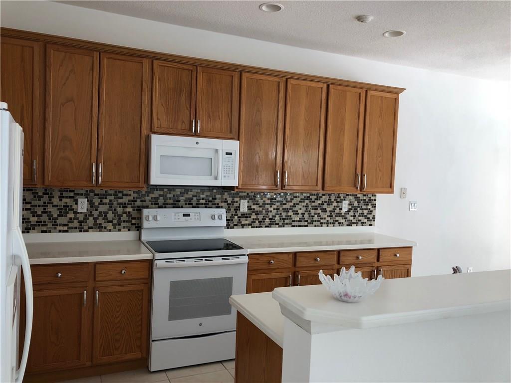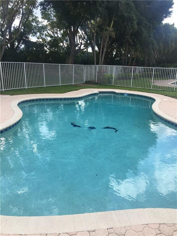 FIVE STAR HOME! This lovely, light, bright & spacious home is located on a quiet, tree-lined street and features: oversized eat-in kitchen w/ 42" refurbished wood cabinets, new appliances, new tile backsplash & corian counters; freshly painted interior; free-form pool & oversized deck; private fenced backyard; storm shutters; tile floors down & wood floors up; one bedroom/full bath downstairs & much,much more. Community pool, clubhouse, gym, Bball, playground & volleyball. All schools are "A" rated.