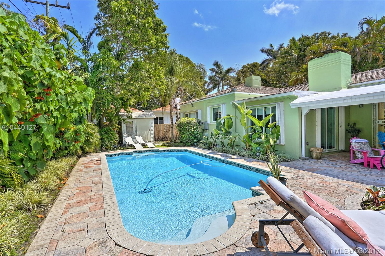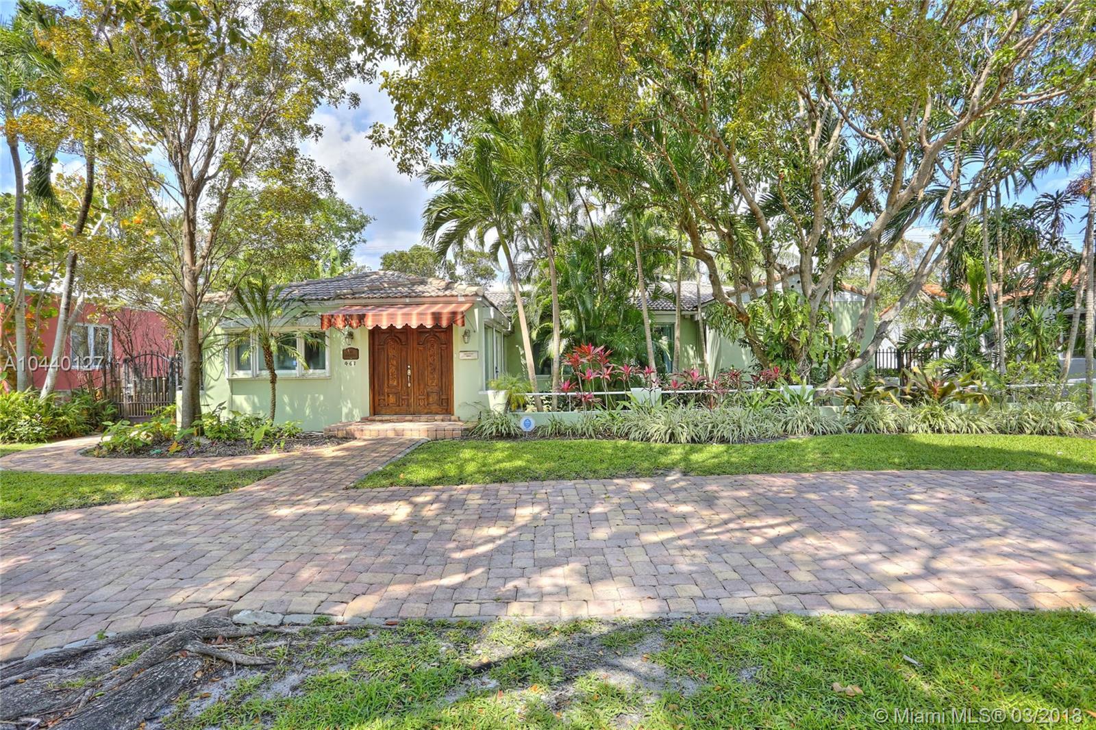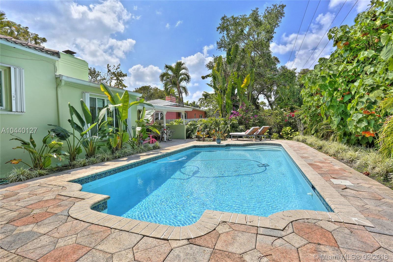 This charming pre-war courtyard ranch style home will impress you from the first moment you enter the long glass enclosed foyer to the beautiful heated tropical pool in the back. This gem is a large 3BR/2BA plus a den (4th bedroom), formal dining room plus large dinette/family room off the remodeled open kitchen. Charming features include volume ceilings, custom plaster moldings, fireplace, vintage bathrooms, marble and rich oak wood floors. The kitchen has custom Brookhaven maple cabinets, Thermador and Bosch cooktop and wall oven, granite counters and more. Located on one of Morningside's prettiest tree lined streets. Easy to show.