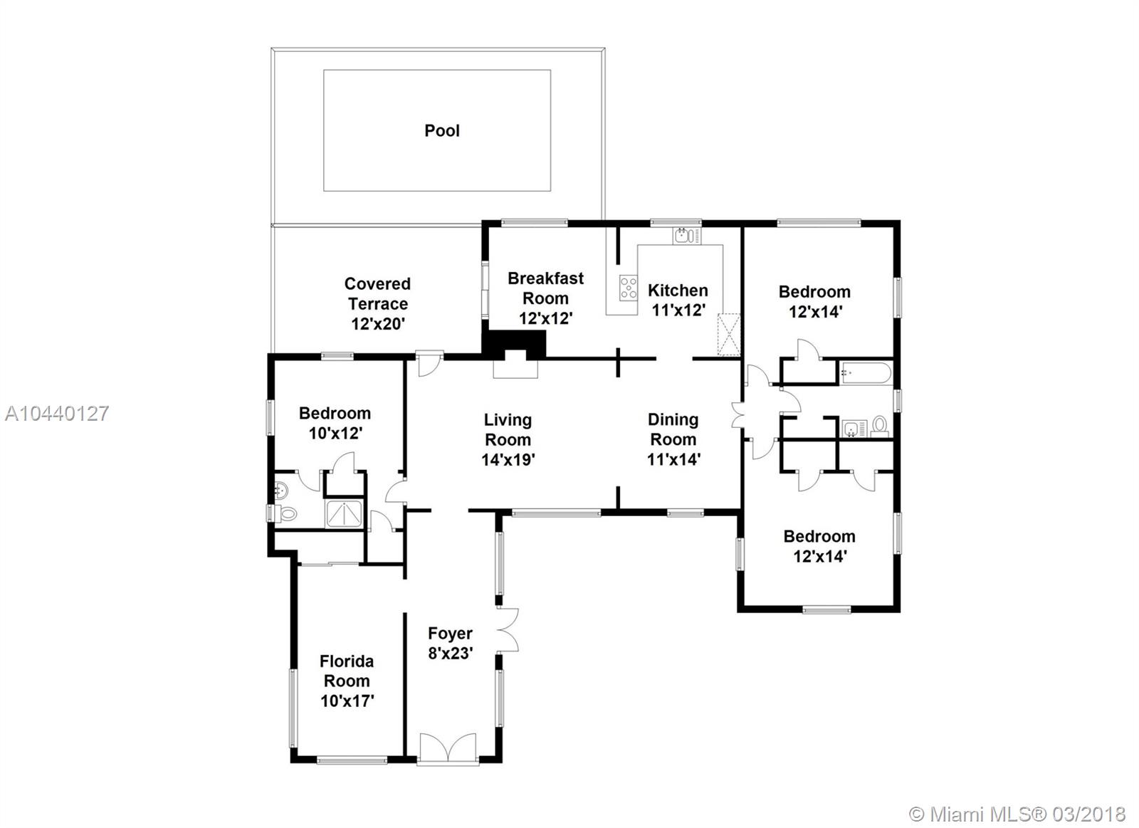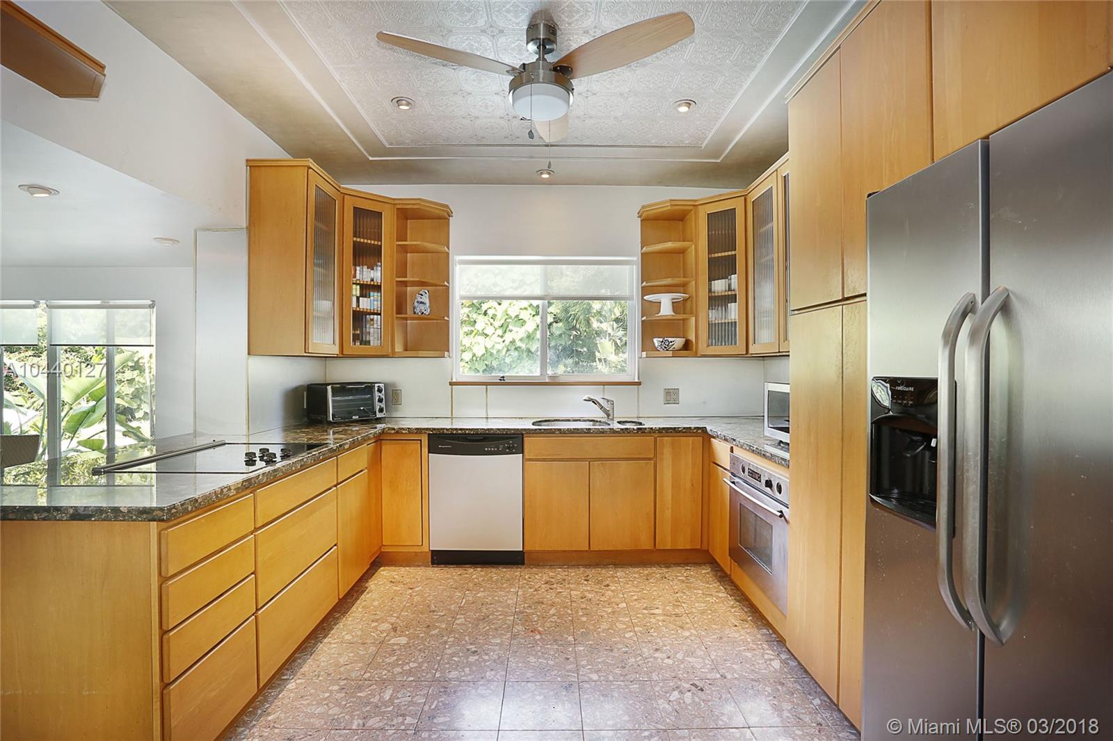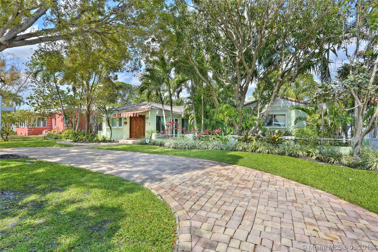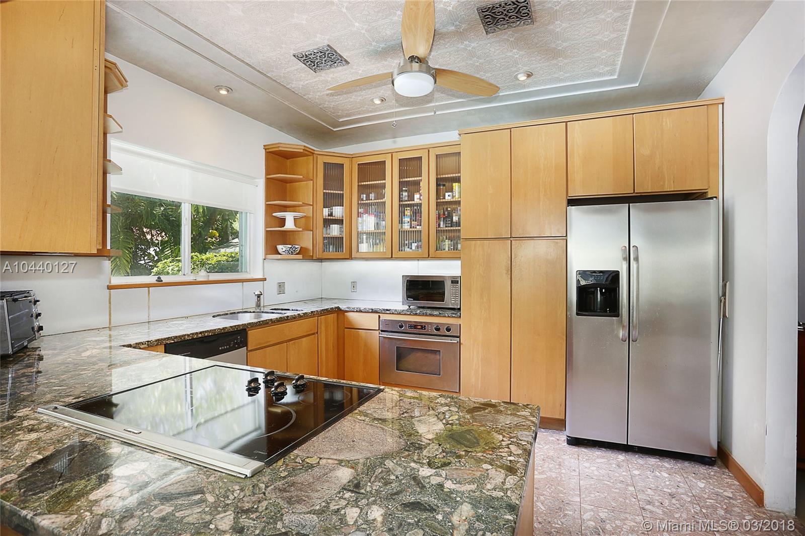 This charming pre-war courtyard ranch style home will impress you from the first moment you enter the long glass enclosed foyer to the beautiful heated tropical pool in the back. This gem is a large 3BR/2BA plus a den (4th bedroom), formal dining room plus large dinette/family room off the remodeled open kitchen. Charming features include volume ceilings, custom plaster moldings, fireplace, vintage bathrooms, marble and rich oak wood floors. The kitchen has custom Brookhaven maple cabinets, Thermador and Bosch cooktop and wall oven, granite counters and more. Located on one of Morningside's prettiest tree lined streets. Easy to show.