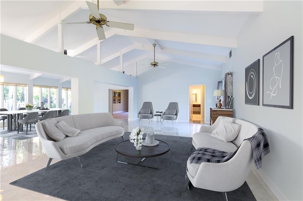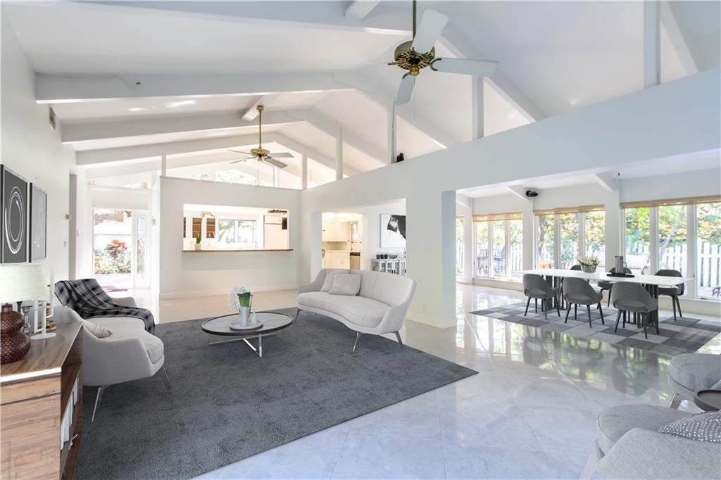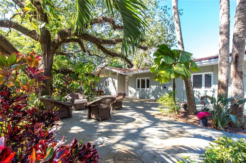 Rare opportunity to live on this exquisite tree covered street. Tropical compound on ¾ acre w/ sprawling tranquil gardens.Timeless architecture offers chic-modern,mid-century influence,open floor plan. Vaulted ceilings,new tiled floors,living areas looking over your own Eden. Chef's dream kitchen w/Viking & Subzero appliances.4 bed,2 updated baths, New AC. Abundant natural light. Huge laundry room,2 car garage. Indoor/Outdoor entertaining w/patios,decks, pergola & fountain Also avail for rent at $4500/mo