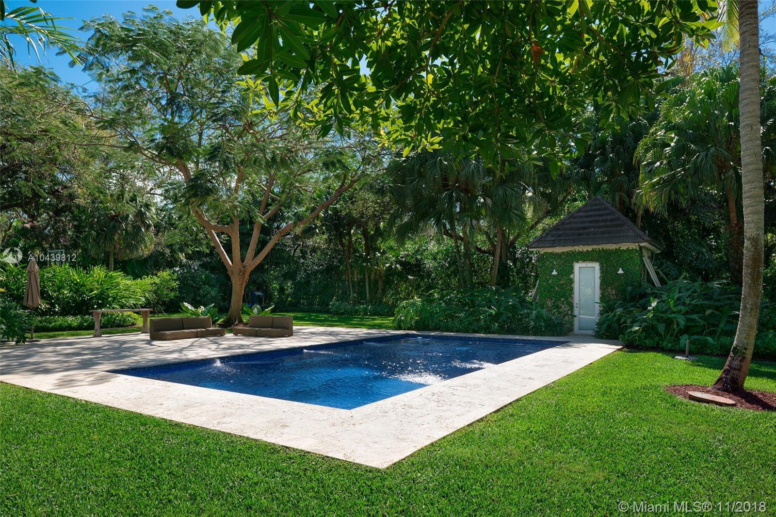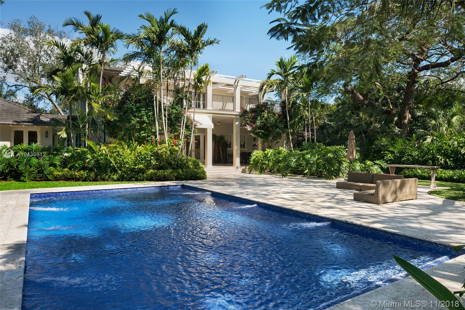 Plantation style estate on over an acre with storybook setting perfect for entertaining! Gated entry with circular driveway, vaulted ceiling foyer entry to formal dining/living rooms. Family room with custom built in and wood bar. Beautiful custom kitchen with SS appliances, walk in pantry and chef’s island. Ground floor master bedroom with sitting room/office. 4 bedrooms & second family room upstairs with balconies overlooking the picture perfect grounds. Expansive backyard with stone floors, lit basketball court, pool, and cabana bath. Includes 2 car garage, impact glass, wood floors throughout handcrafted custom millwork and Lutron lighting.