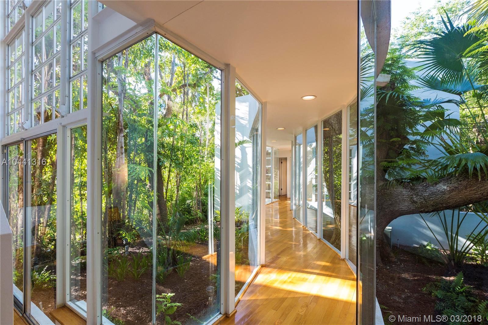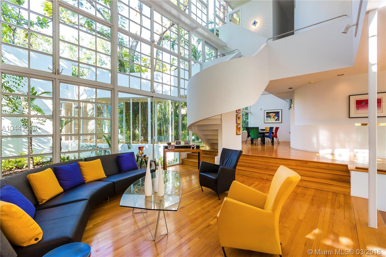 This architectural masterpiece will take your breath away. From the moment you walk in this walled, tropical paradise you will be wowed. Luxurious contemporary living offering an unparalleled connection to nature. Floor to ceiling windows, soaring ceilings, a natural palette with an open floor plan and light filled spaces. 2 bedrooms downstairs, master suite upstairs. Prestigious South Gables location. Dramatic, Peaceful & Private. A very special home awaits.