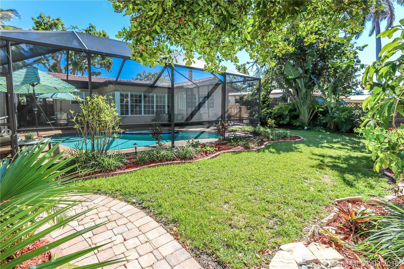 Tropical gem in the heart of Hollywoood Lakes on the prestigious N Northlake Drive surrounded by multi-million dollar homes. Spacious 3bedrms/2bath w/ 1 CG pool home features a split floor plan w/ living room, formal dining room, & Florida room. Freshly painted & move in ready home comes equipped w/ an updated eat in kitchen w/ bar height island dining, granite counter tops plus backsplash, ss appliances, tri bowl sink, new faucet, white cabinets, pantry, a small built in desk area, & a pass through into the living/dining room. Master bath has a beautiful mosaic tile wall, & a double glass door travertine shower. 2nd bath features double sink w/ glass tile backsplash, marble, & spacious linen closet. Nicely landscaped fenced backyard, screened in pool, & Florida room.