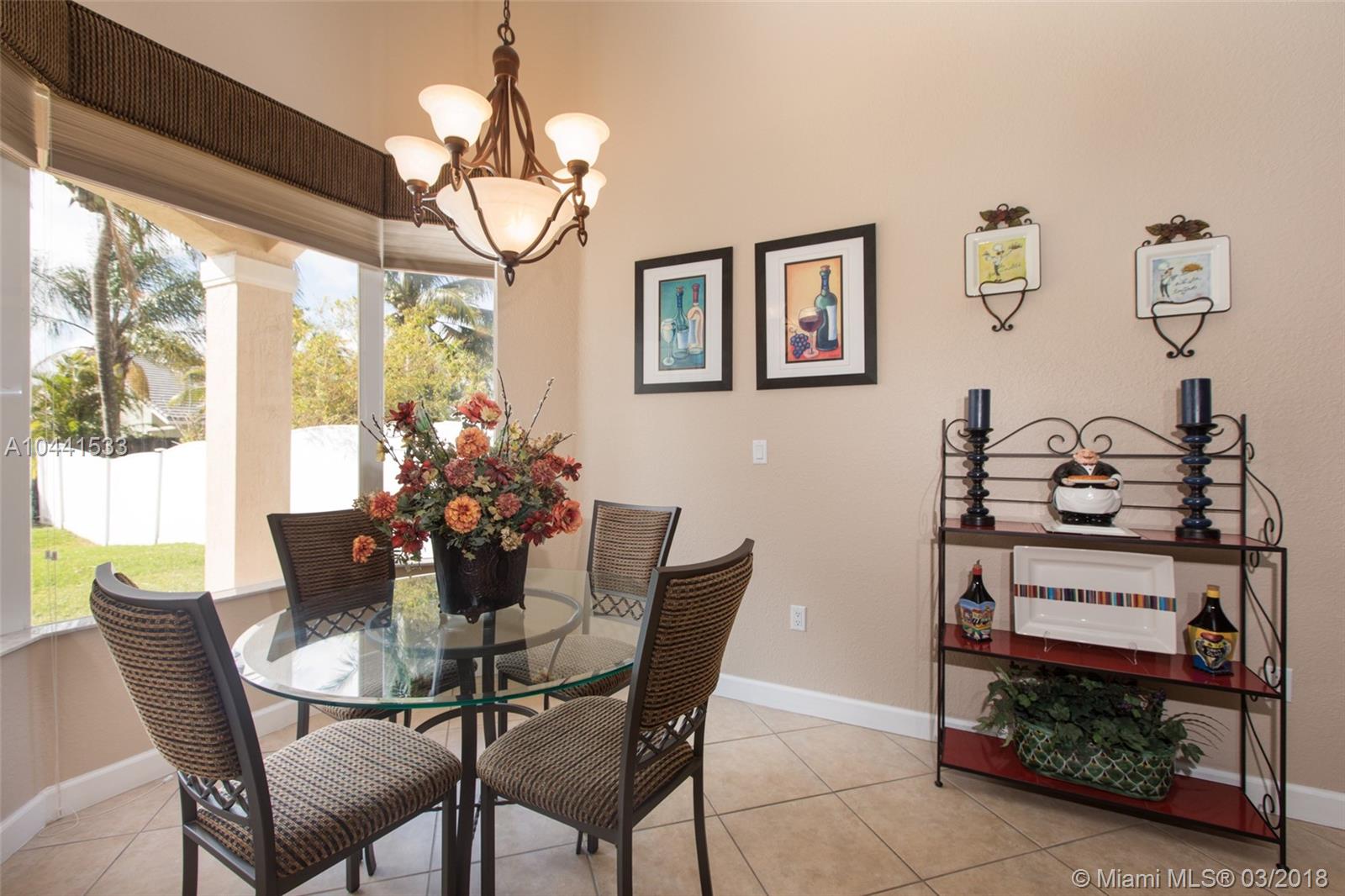 Turn key 4 bed 3 bath in Royal Griffin Estates! Sought after Cooper City neighborhood zoned for highly rated schools. Paver driveway and front walkway lead you into the spacious open floor plan with vaulted ceilings. Separate living room and formal dining area. Kitchen features upgraded cabinets, granite counter with breakfast bar, stainless steel appliances and separate café area with bay window looking out into the backyard. Large master bedroom with tray ceiling, master bath features dual vanities, garden tub, and separate shower. Family room features French doors leading you to the covered patio and large backyard with room for pool. Exterior just painted, hurricane shutters for the entire house. Conveniently located close to major highways and just a short drive to the beach.