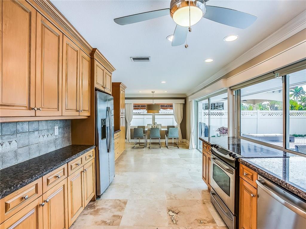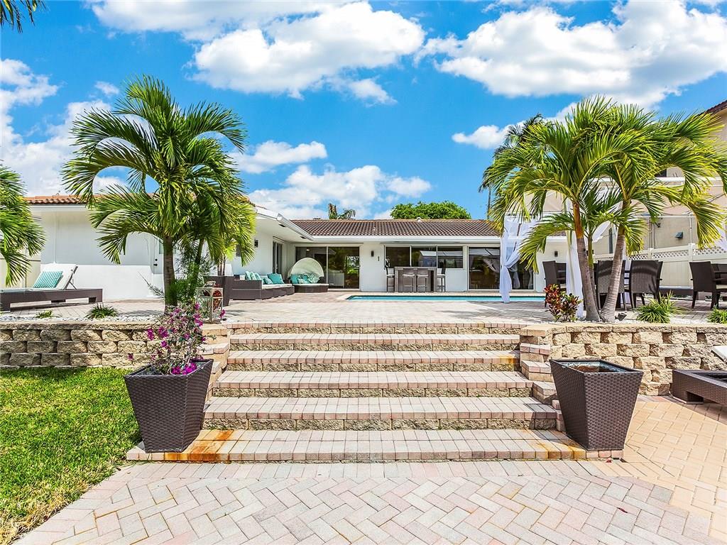 This beautiful fully furnished 3 bedroom 2 bath home offers the perfect setting for boaters and entertainers. The spacious pool area has 75ft of waterfront and includes a newer dock. The interior open floor plan provides for another great entertainment area. The bright open kitchen has granite, stainless steel appliances and marble. Tastefully furnished by Miami designer Jeanine Johnsen. Just bring your boat your toothbrush and move right in! Ocean access, one fixed bridge 13.5 ft.