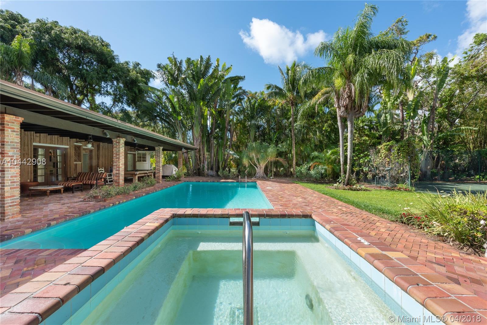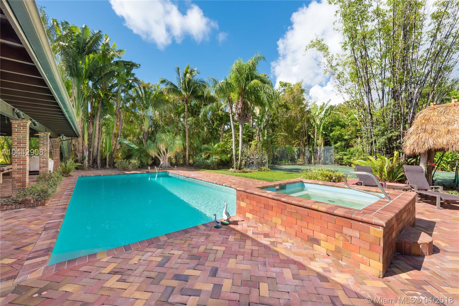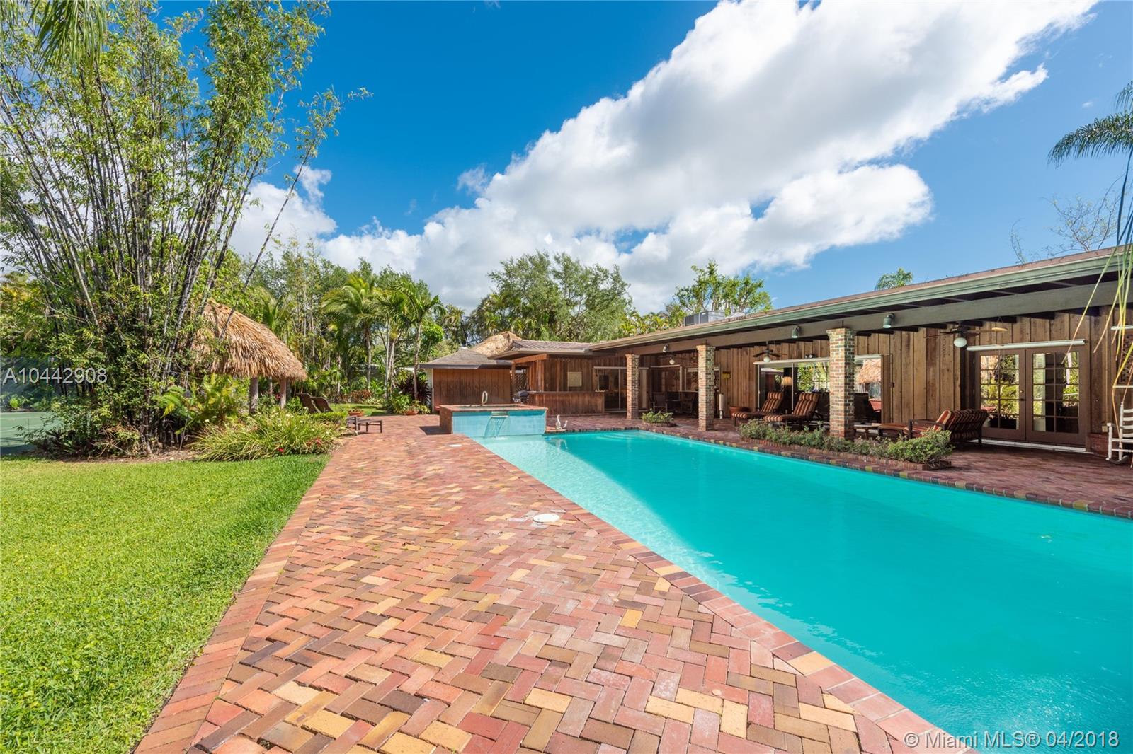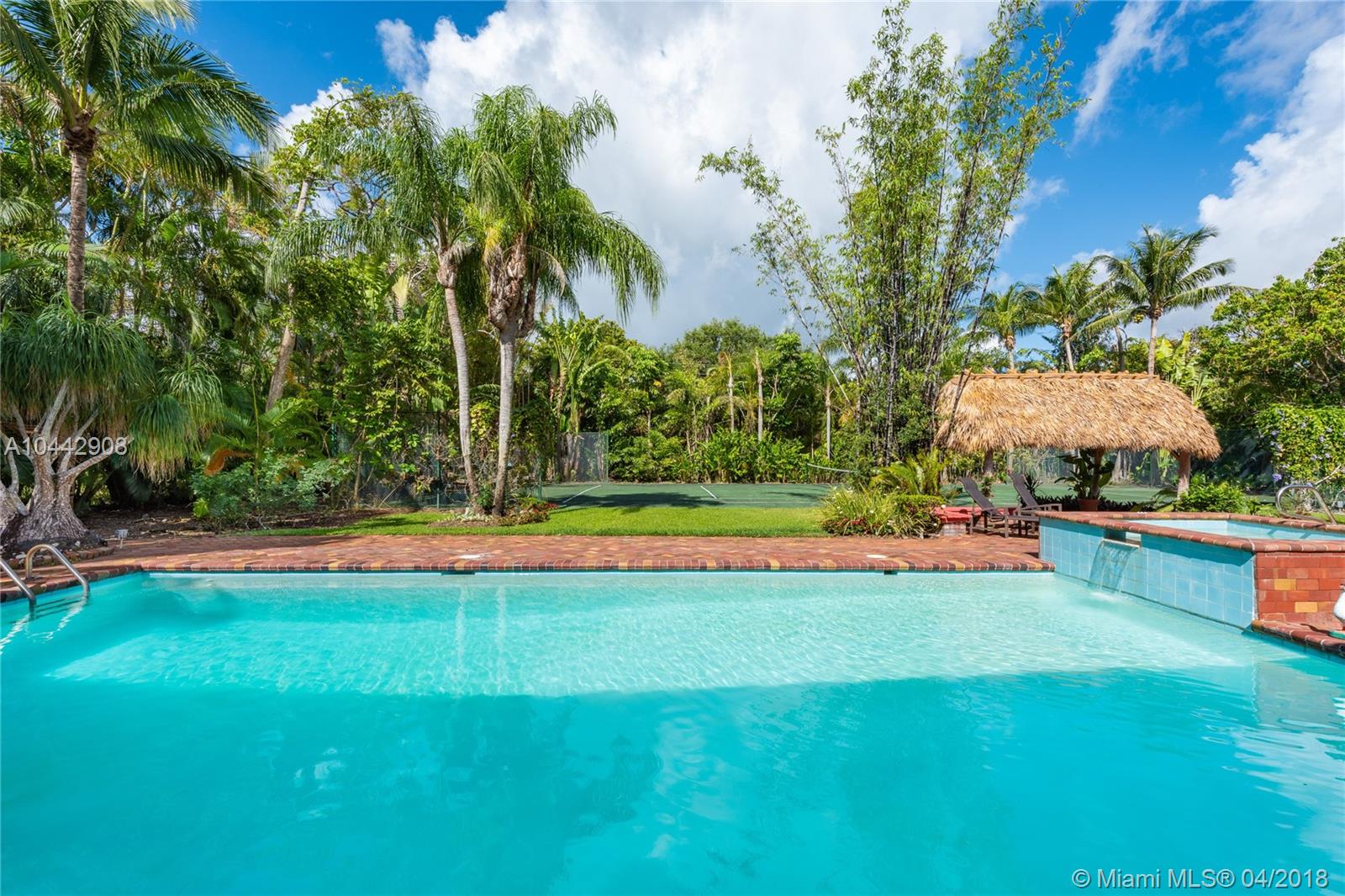 Sophisticated 5BD plus office & 4BA home situated on deep lush acre on quiet street in Pinecrest. Elegant entry way that opens up to large formal living & dining rooms. Eat-in kitchen w/wood cabinetry. Split bedroom w/master & office/nursery/exercise room on one side & 4 bedrooms on other side. Master suite features large walk-in closet & beautifully renovated luxurious bath. Wood flooring. Indoor laundry room. Wonderful, private back yard w/pool, patio & tennis court. Perfect family home!