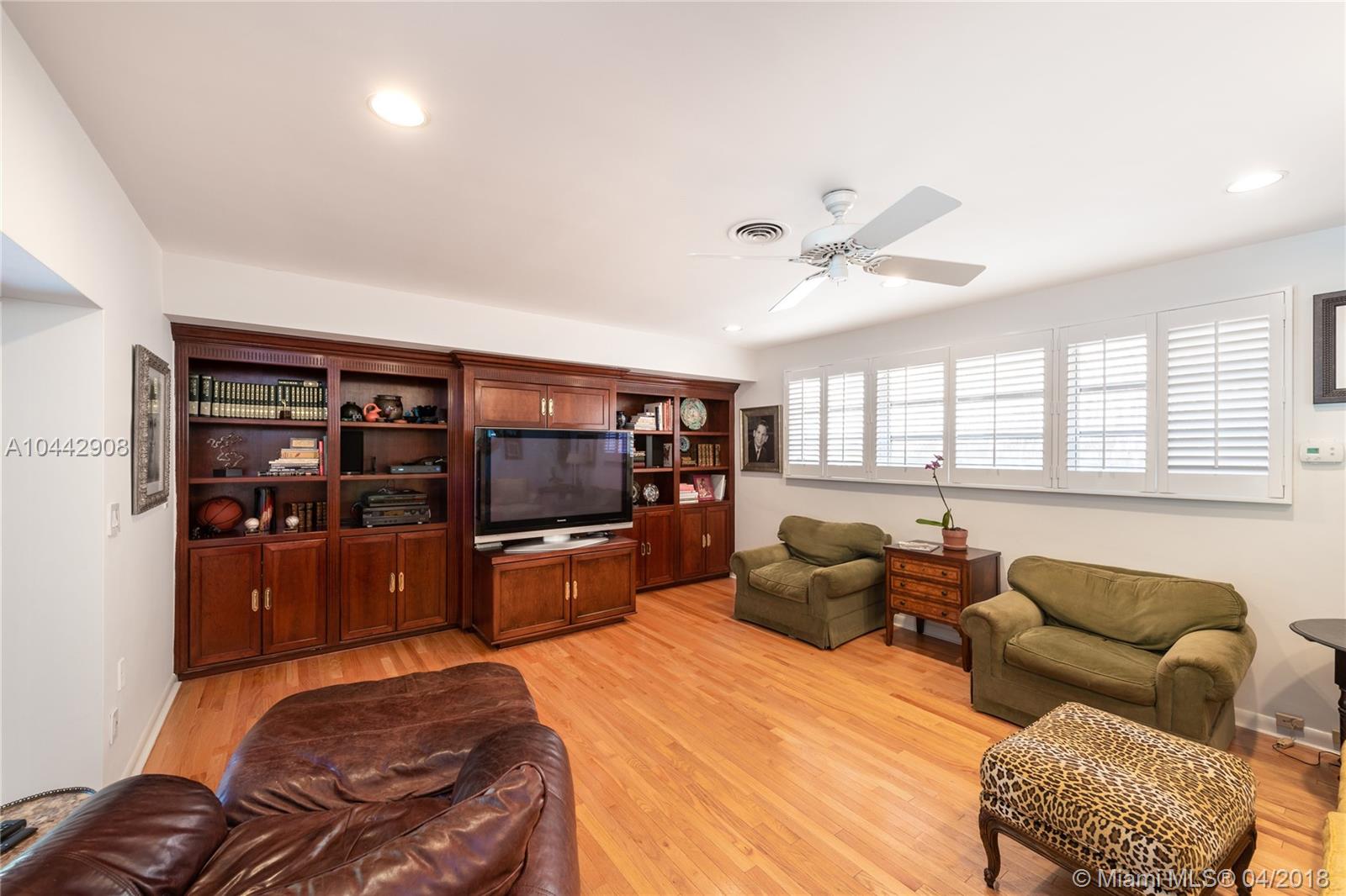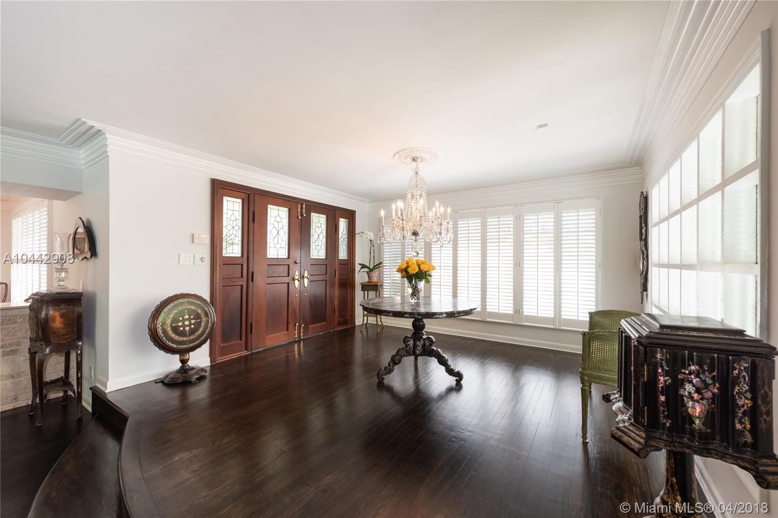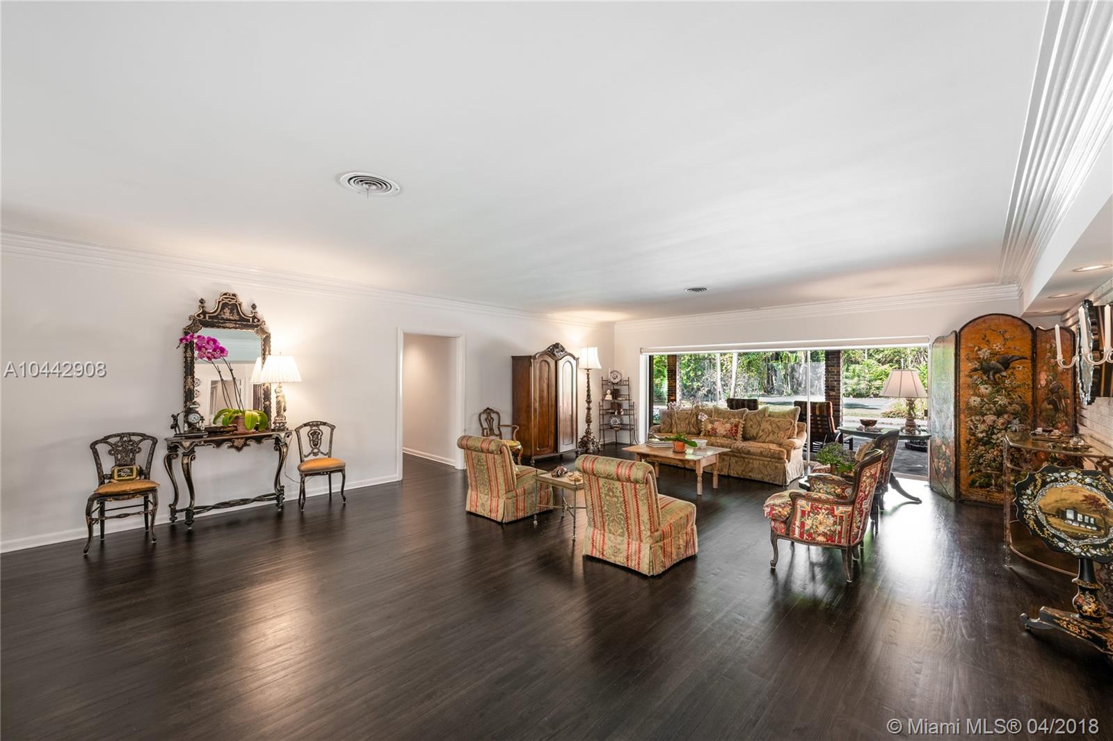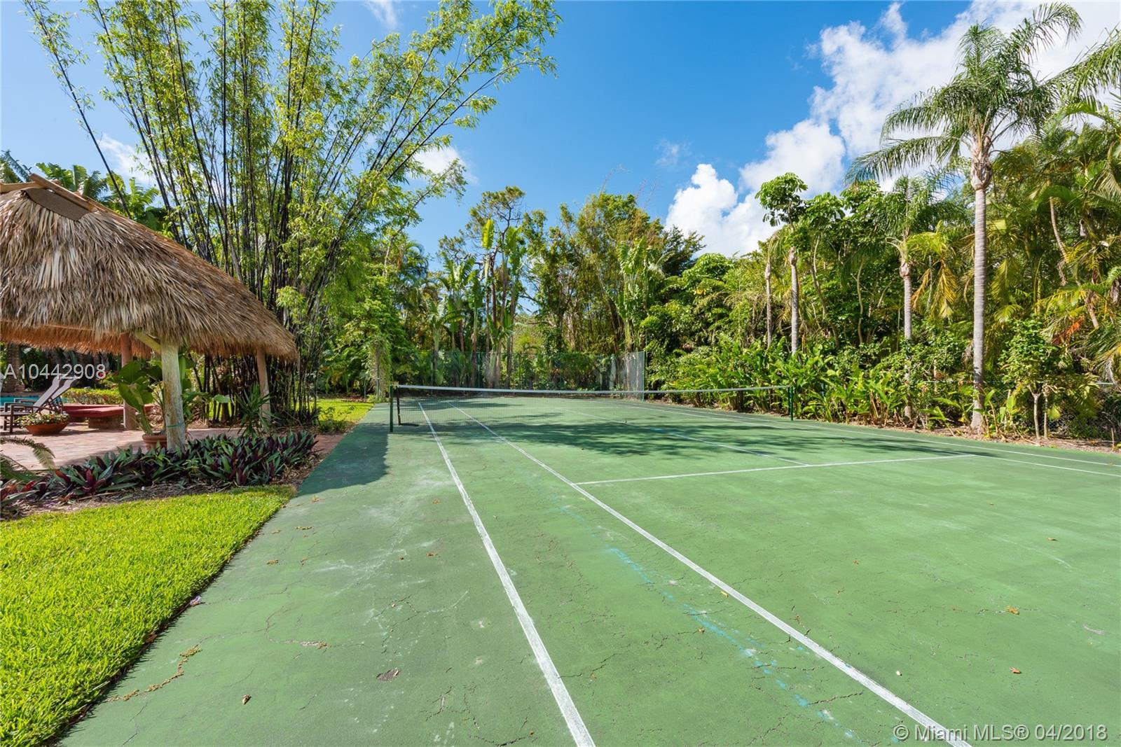 Sophisticated 5BD plus office & 4BA home situated on deep lush acre on quiet street in Pinecrest. Elegant entry way that opens up to large formal living & dining rooms. Eat-in kitchen w/wood cabinetry. Split bedroom w/master & office/nursery/exercise room on one side & 4 bedrooms on other side. Master suite features large walk-in closet & beautifully renovated luxurious bath. Wood flooring. Indoor laundry room. Wonderful, private back yard w/pool, patio & tennis court. Perfect family home!