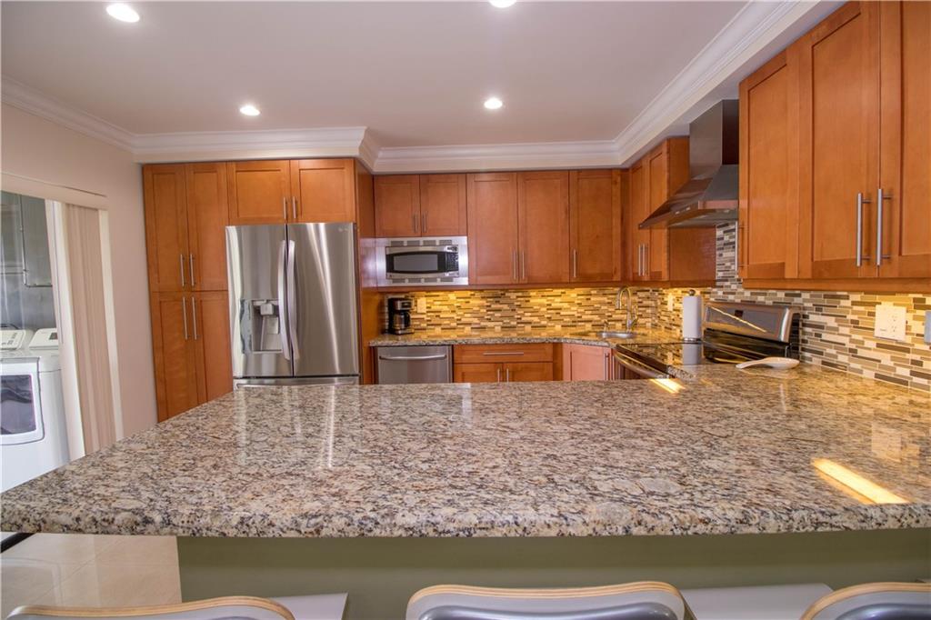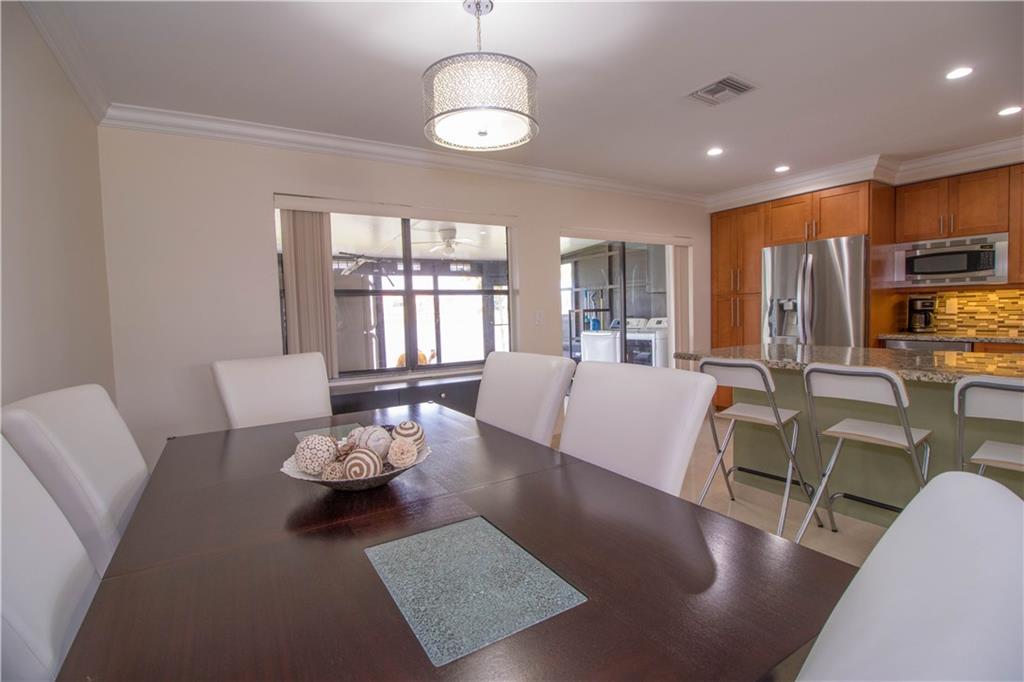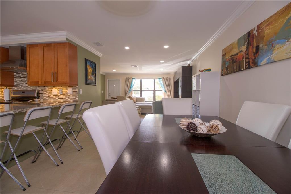 This spacious and fully remodeled townhome incorporates 3 bedrooms and 2.5 baths, with an open floor plan which opens to the main living and dining area. The large remodeled kitchen allows for easy entertaining while providing you with tons of storage space. This generously interior flows effortlessly from the meticulously indoor open space to the glassed screen porch which overlooks a vast body of water, creating a serene and tranquil atmosphere for your evenings. Impact windows, brazilian cherry flo