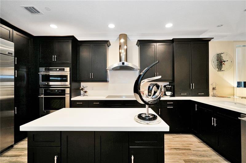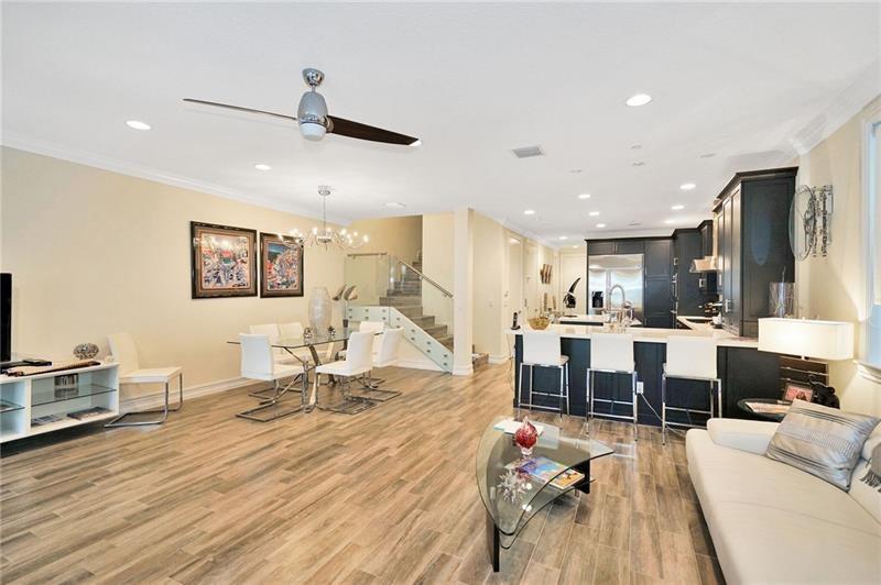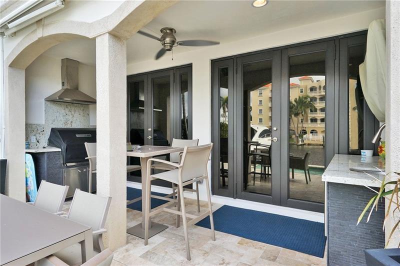 Gorgeous Contemporary T/H Rarely available Gated entry 2 Car Garage Fully furnished waterfront w/50' Deeded Dock Beautifully decorated & meticulously maintained Light& Bright open floor plan High ceilings Elevator Master suite takes up entire 2nd floor Tremendously upgraded w/built in fridge on both landings Newly decorated kitchen w/top of the line appliances quartz countertops w/wine fridge Spectacular outdoor living w/Summer Kitchen Full Wet Bar BBQ TV Private pool The ultimate in city living