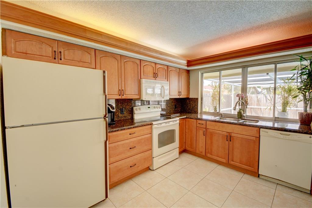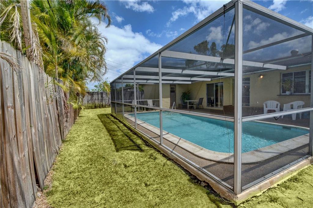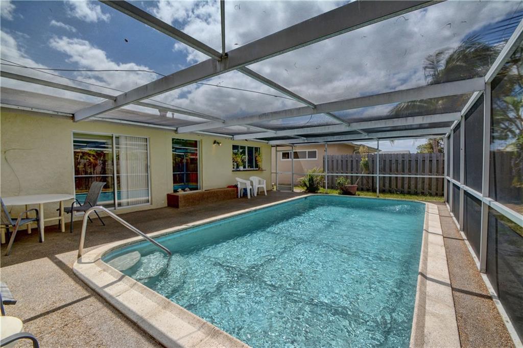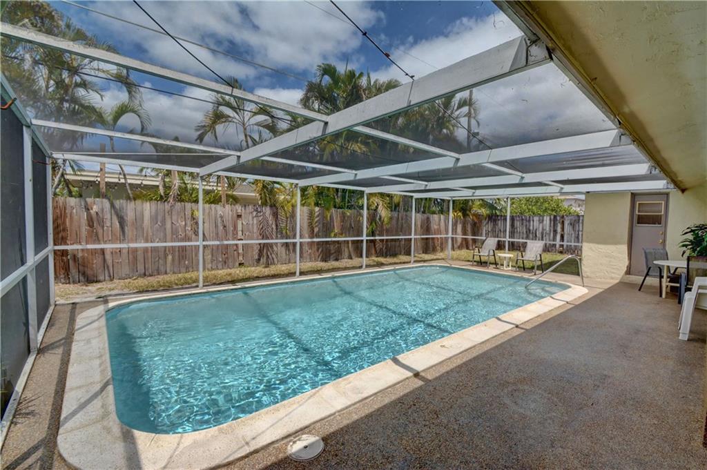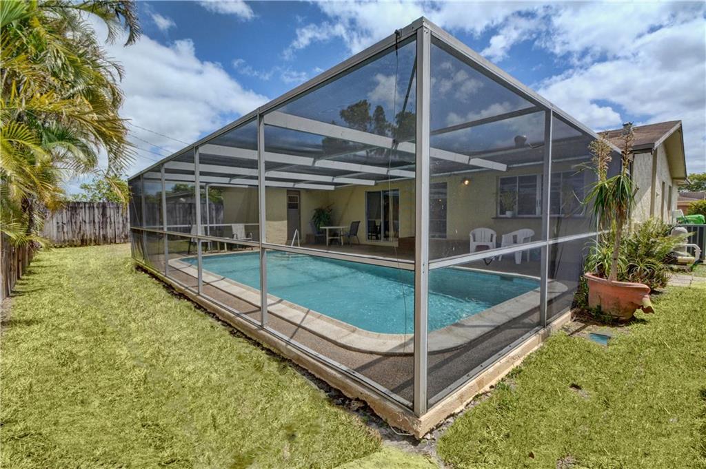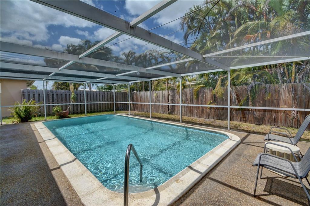 This 3 bedroom, 2 bath pool home in Sunrise Golf Village features an updated, eat-in kitchen with real wood cabinets & granite, updated bathrooms, 2006 roof, gas water heater, screened-in pool & patio, converted 2 car garage, laminate in bedrooms, tile in living areas and fenced yard. Best of all NO HOA! Close to shopping & dining.