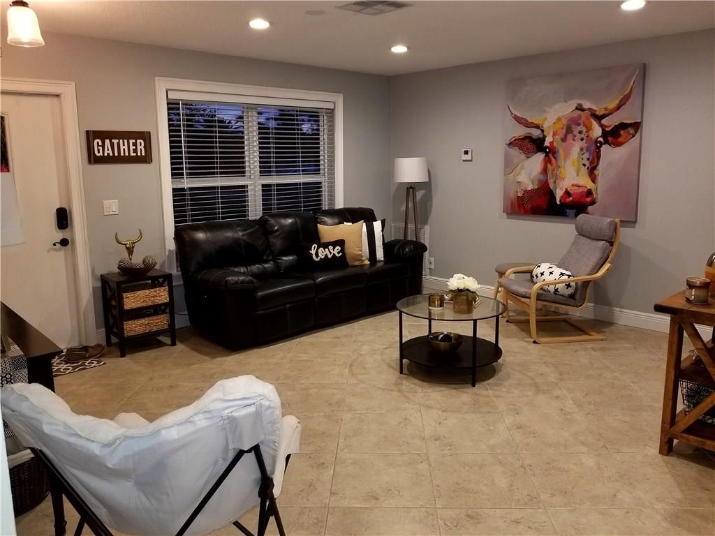 WOW!!! What a phenomenal, fully remodeled gem on paved Sunset Blvd! Truly move in ready. 3/2 plus huge converted bonus room with separate entrance. Impact windows, ELEGANT kitchen with spacious granite countertops, stainless steel appliances, beautifully upgraded bathrooms with frameless shower door, Stunning floors, large laundry room with lots of cabinets/storage, tons of lighting, alarm system, faux wood blinds, walk in closet, ceiling fans, extremely large yard with shed & much much more!!