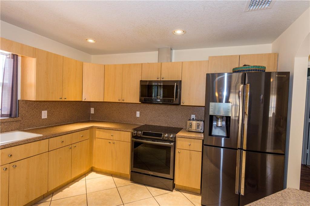 Amazing opportunity on this beautifully upgraded newer home built in 2004 in the heart of Hollywood! Diagonal stone tile throughout living areas and wood laminate in the bedrooms. High, knockdown textured ceilings with Crown moldings, recessed and upgraded lighting. Very large kitchen with designer arches, upgraded Samsung appliances and tons of counter space, opens to living and dining areas. The tiled back patio with awning provides a private and tranquil place to relax. Make this your home today!