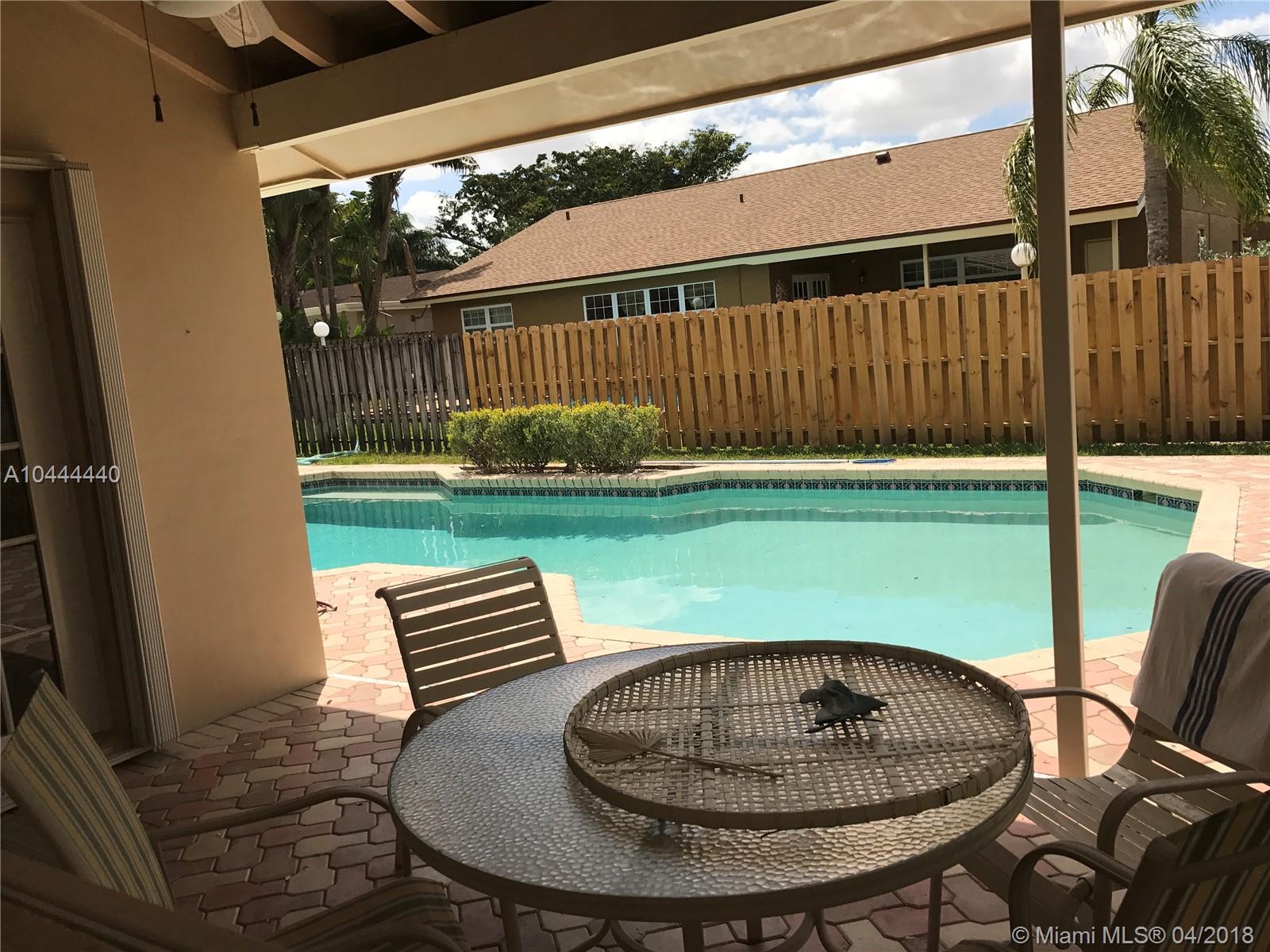 Much in Demand: Cooper City Flamingo Gardens! Fall in love when you enter this Bright and Spacious 3-Bdrm 2-Bath home! Vaulted ceilings give an extra spacious feel, while still cozy with the working Wood Burning Fireplace! Fully upgraded eat-in kitchen has granite counter tops, wood cabinets, stainless appliances, and professionally finished ceiling. Hurricane French Doors in the Family Room open to the Covered Patio where you can Relax or Entertain with plenty of room to Sunbathe around the Pool. All windows have Accordion Hurricane Shutters. Oversized Master Bedroom has Walk-In Closet and Master Bath with Cabana Door to the Pool. Garage has space for two cars and a laundry area. Freshly Painted Exterior. A+ Schools. No HOA. Amazing neighborhood and Community! Close to everything!