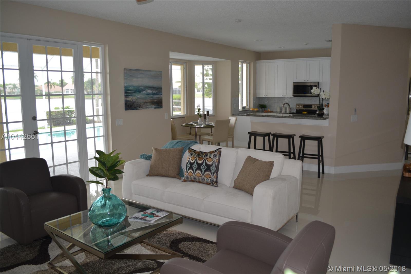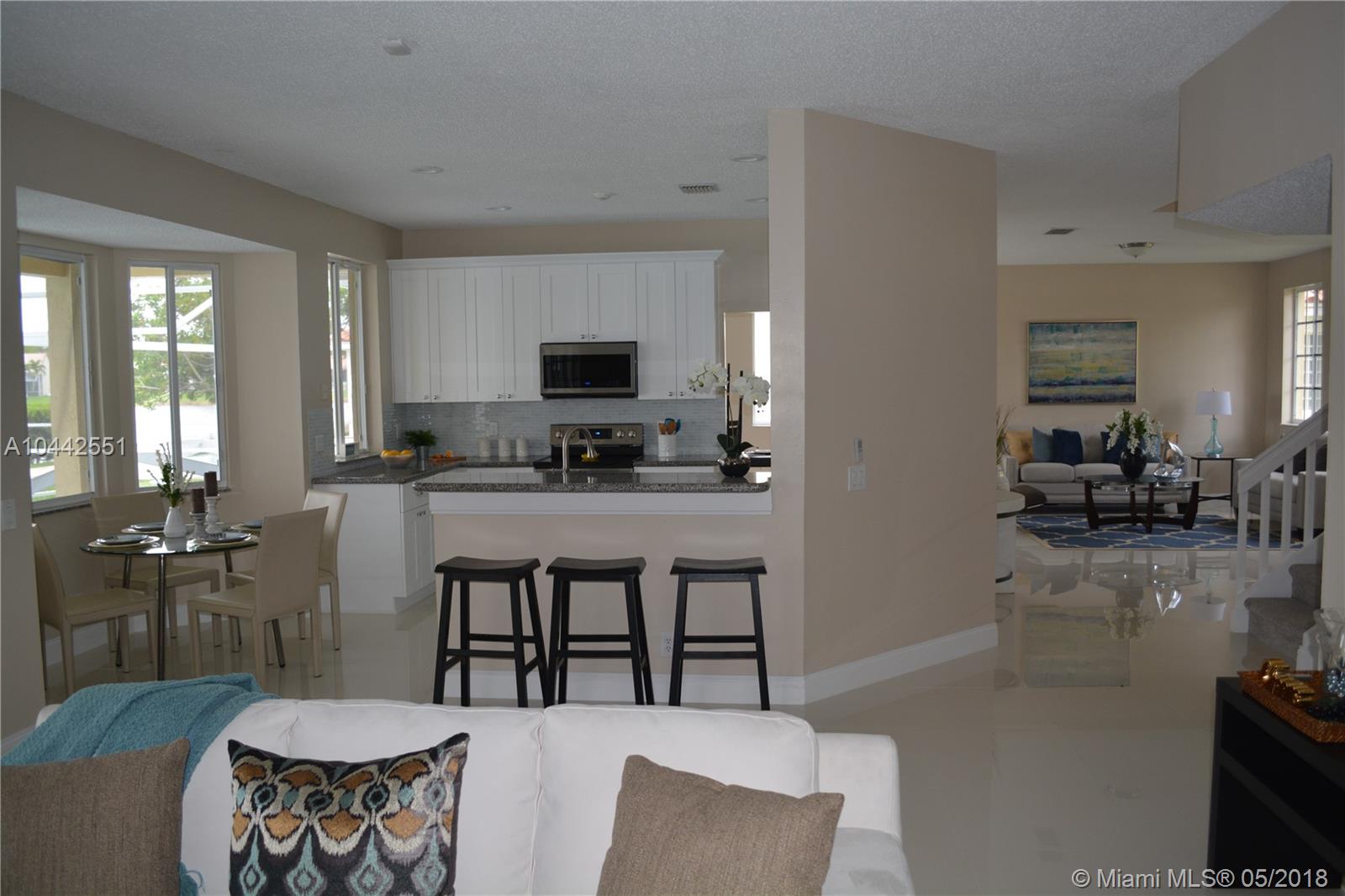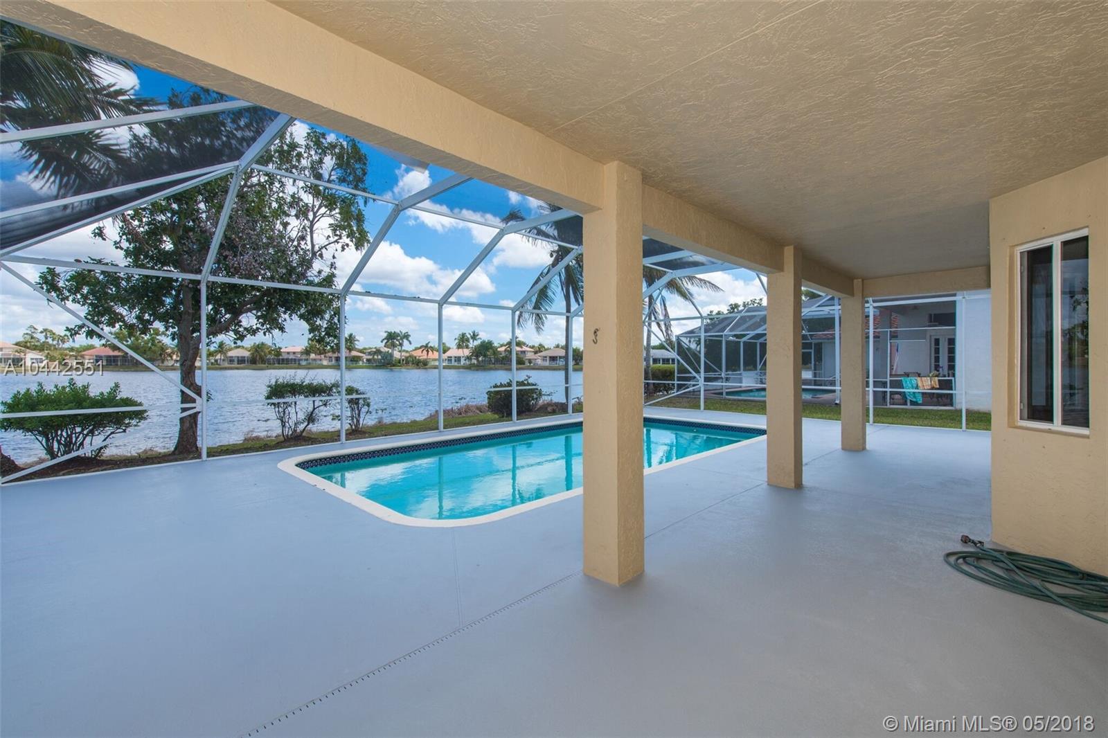 Spectacular and breathtaking lake front spacious 2 story 5/3 with a screened pool in Weston. One of the safest cities in the country. Completely renovated. New kitchen cabinets and bathroom cabinets with soft close doors. Granite countertops. New Samsumg Stainless steel appliances including washer/dryer. New porcelain tile (24x24) throughout the first floor and new carpet upstairs. Huge master bedroom. Open floor plan. LED lighting throughout the entire house. Low HOA and community facilities. Breakfast area with bay window to enjoy the view and lots of light. If top Notch schools and gated communities are a must, this house is for you. Must see!!!