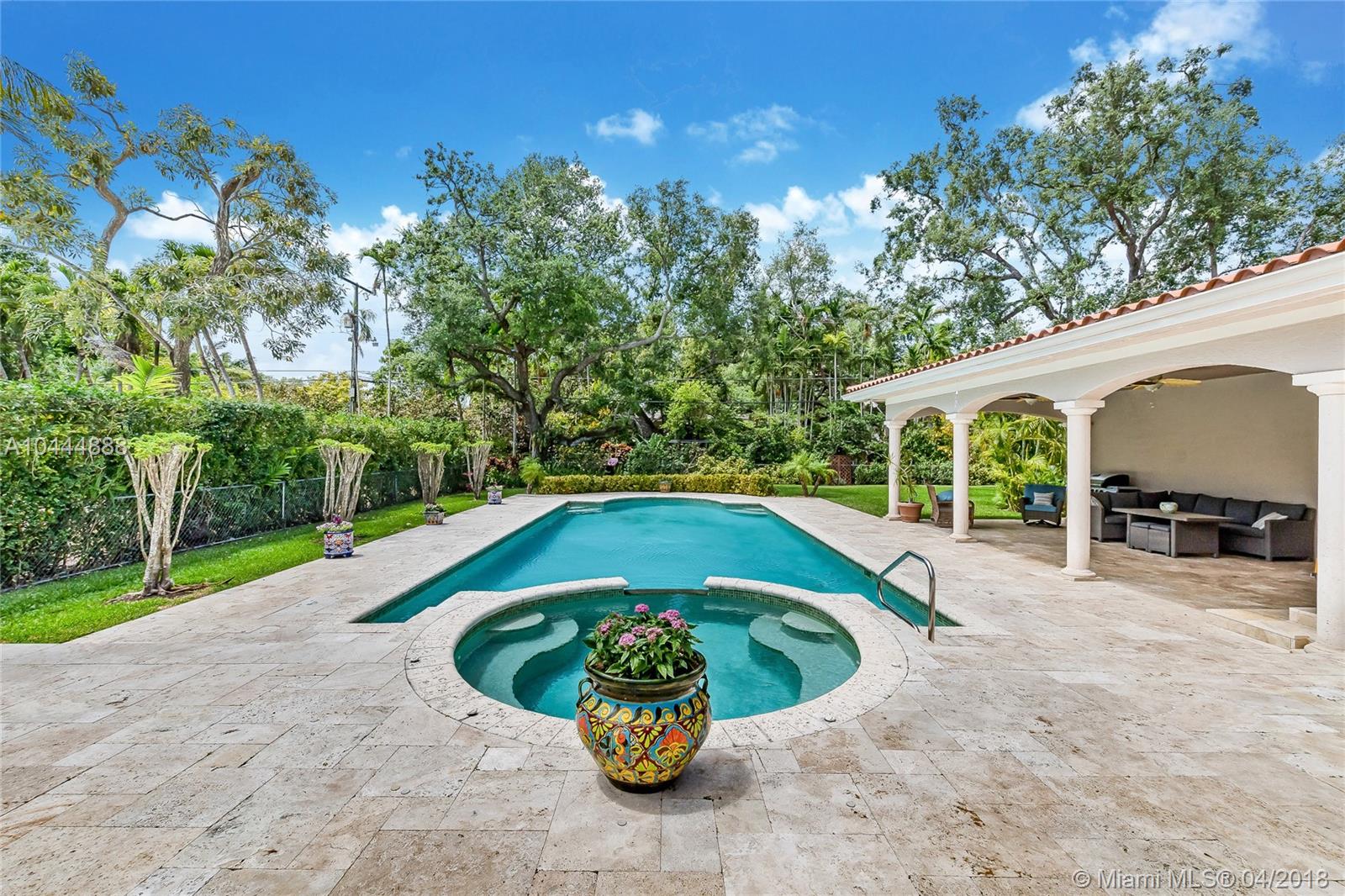 This lovely 3 ensuite bedroom home, with a 4th smaller bedroom/office sits on a 17,500 square foot lot, making it a wonderful choice for families that are looking for a house with a huge backyard and large heated pool and spa. Located on prestigious North Greenway Drive, the property is within walking distance to two golf courses, several tennis courts, the Biltmore Hotel, Coral Gables Country Club, Salvadore Park, St. Theresa School, Church of the Little Flower, St. Philip's School and much much more! The home features impact windows and doors, his and her walk-in closets, an updated security system, large formal dinning room, elegant living room with working fireplace, spacious kitchen and family room, beautiful wood floors, 2 car garage and an immense covered terrace.