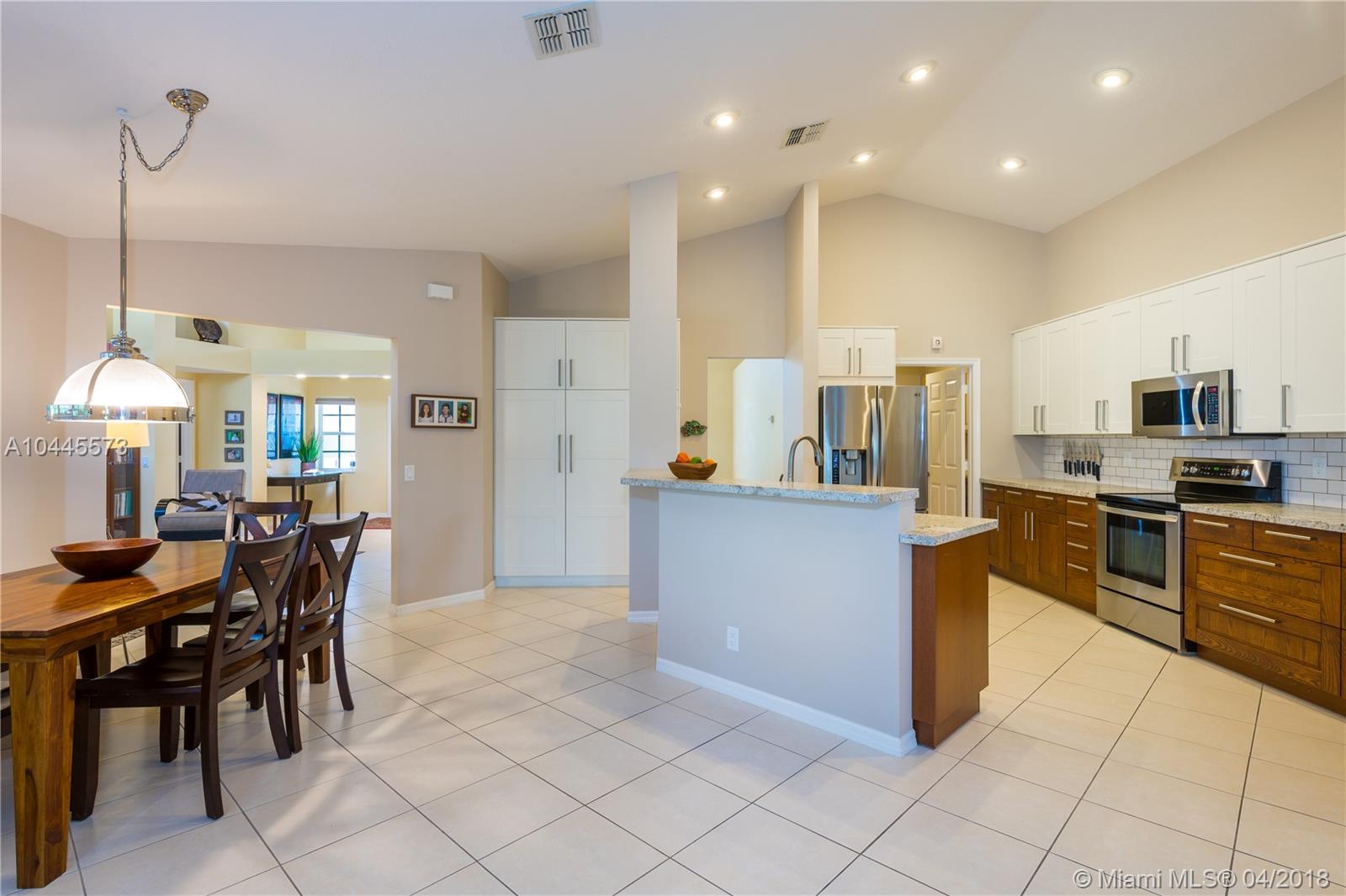 "The Ridge On Nob Hill." Nestled among scenic Tree Tops park with walk/bike trails is this immaculate home. Tranquil ridge views from front porch and dining room. Spacious open concept floor plan is loaded with extras & upgrades. Fully remodeled kitchen boasts gorgeous two-tone cabinetry with tons of built-ins & storage. Matte granite countertops and subway tile, no detail overlooked. GORGEOUS Restoration Hardware fixtures. All windows have Duette, energy efficient light filtering shades plus shutters &/or accordions. Neutral ceramic tile floors throughout. Living room has exquisite built in wood/glass lit cabinetry. Large master bedroom has custom closets. Walk-in closets in every bedroom! Hurricane impact garage door. HUGE covered patio with very private yard. BEST Davie schools.