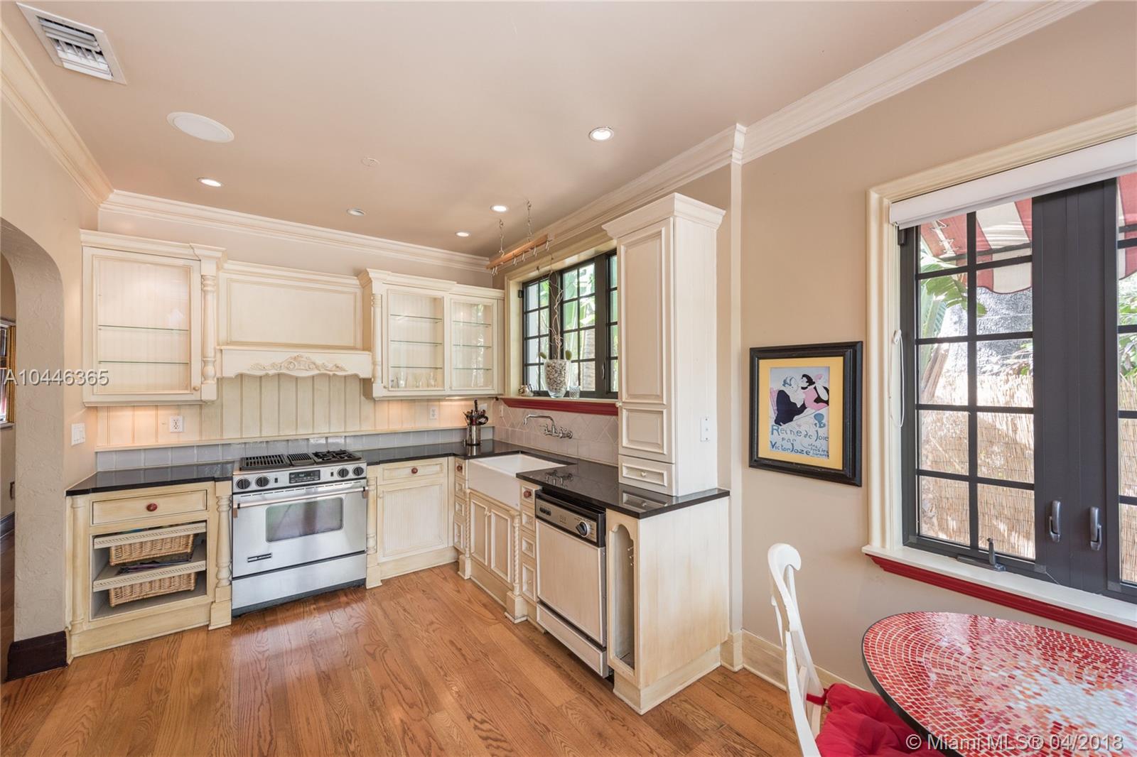 This architecturally unique Spanish home with 2,338 Adj. Sq. Ft. sits on a 7,267 sq. ft. lot and has been lovingly restored. It features 3 bedrooms and 2 bathrooms, formal dining room and eat-in kitchen with stainless steel appliances. The Living Room boasts high, wood beam ceilings and a fireplace. Spacious master bedroom & bath, claw foot tub & bidet. French doors from the kitchen lead to a spacious patio and a charming cottage with bedroom and bath. Impact windows and carport. Electric car charger available on the property. Prime location just blocks to Granada Golf Course & Miracle Mile. Firm Price