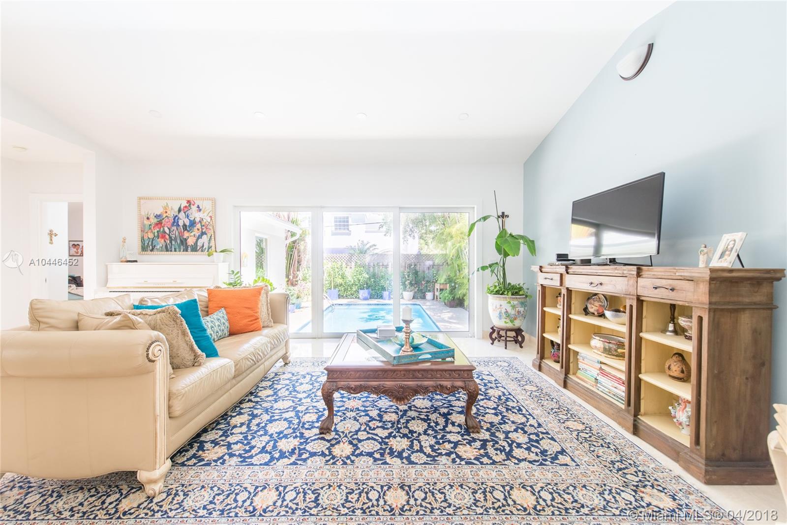 Charming bungalow on a quiet street in lush, South Coconut Grove. Total renovation just completed ($300K+) including new: travertine & wood floors, LED recessed lighting & custom built-ins & mill work throughout. Light-filled living spaces w/vaulted ceilings overlook tranquil pool & ultra-private tropical garden. Stunning custom kitchen features classic white wood cabinetry, dark blue granite countertops, Wolf gas range & wall oven, Miele dishwasher, Subzero refrigerator & island. 4 BR/3.5 BA. Luxurious master suite with over-sized/built out custom closet and spa-like bath that features marble countertops & frameless glass shower with oil-rubbed bronze shower-system. Close to the Grove village center’s boutiques, cafes & bayfront parks & marinas. Minutes to downtown, MIA and the Beaches.