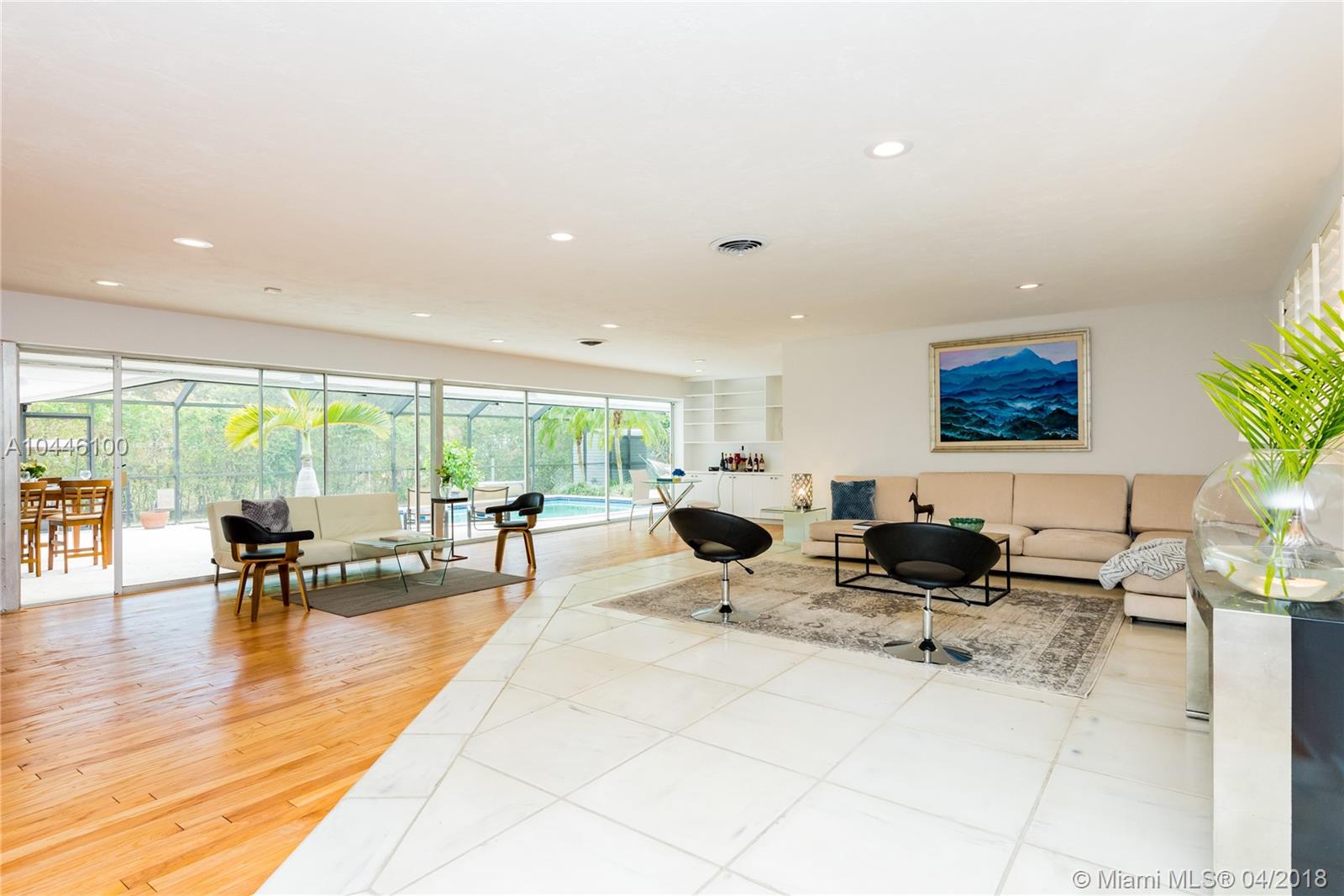 Paradise in Pinecrest! Spacious living, spectacular entertaining, secluded ~half-acre yard and timeless character in this mid-century modern pool home. Gourmet open kitchen, modern baths and bright open floor plan. Multiple living areas plus formal dining, den and exquisite outdoor entertaining space for relaxing or recreation. Meticulously-maintained finishes throughout with over-sized sliding glass doors overlooking the large screened pool deck, basketball court, and lush tropical garden. Plenty of storage throughout, plus a large two car-garage. Conveniently located near area fine dining and shops, yet nestled away from the hustle-bustle of the city in your own private oasis. If you’re looking for a reasonably-priced 4-bedroom Pinecrest home in a great location, this is a must see.